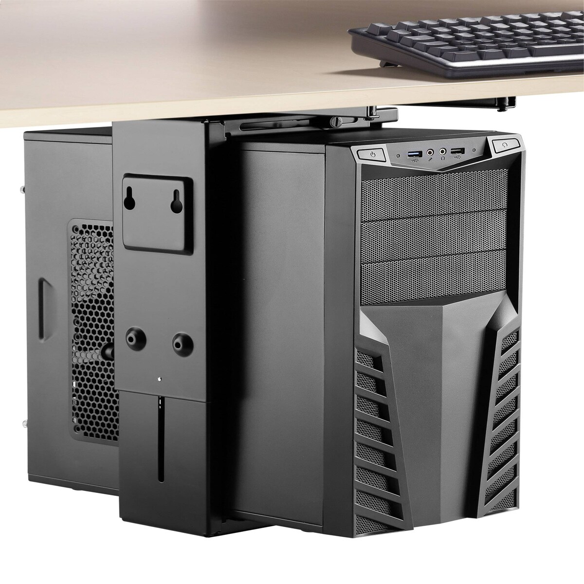 CPU-Halterung unter dem Schreibtisch - PC-Gehäusehalter - Verstellbar 25–51 cm - Kaltgewalzter Stahl - Hängende Montage - Schwarz