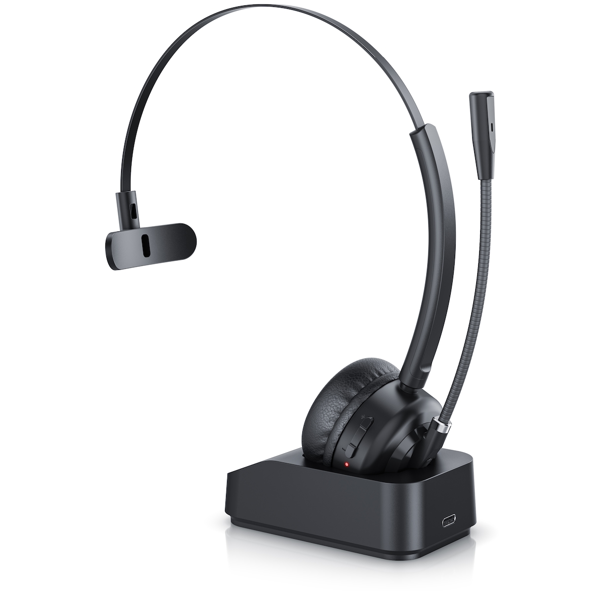 Cleyver NW30 UC - Schwarz Schnurloses Bluetooth Headset mit USB-Dongle für PC & Smartphone - ideal für Büro und Home-Office