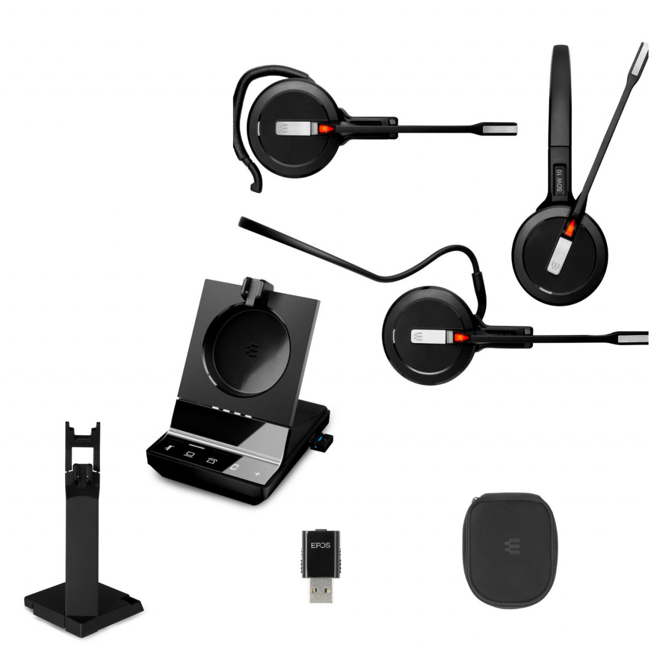 DECT-Headset IMPACT SDW für Telefon, PC und Smartphone + D1 DECT-Dongle + 2. Ladestation + Tasche