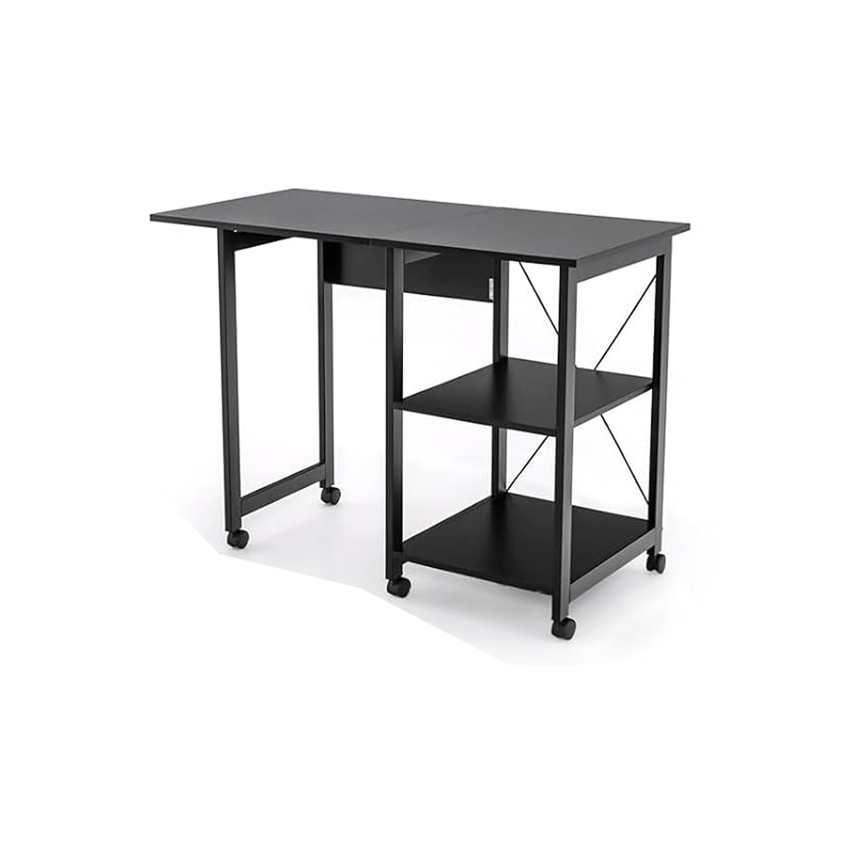 COSTWAY Klappbarer Computertisch, Moderner Schreibtisch mit 2-lagigen Abteilen & 6 Rädern, PC-Tisch, Laptoptisch