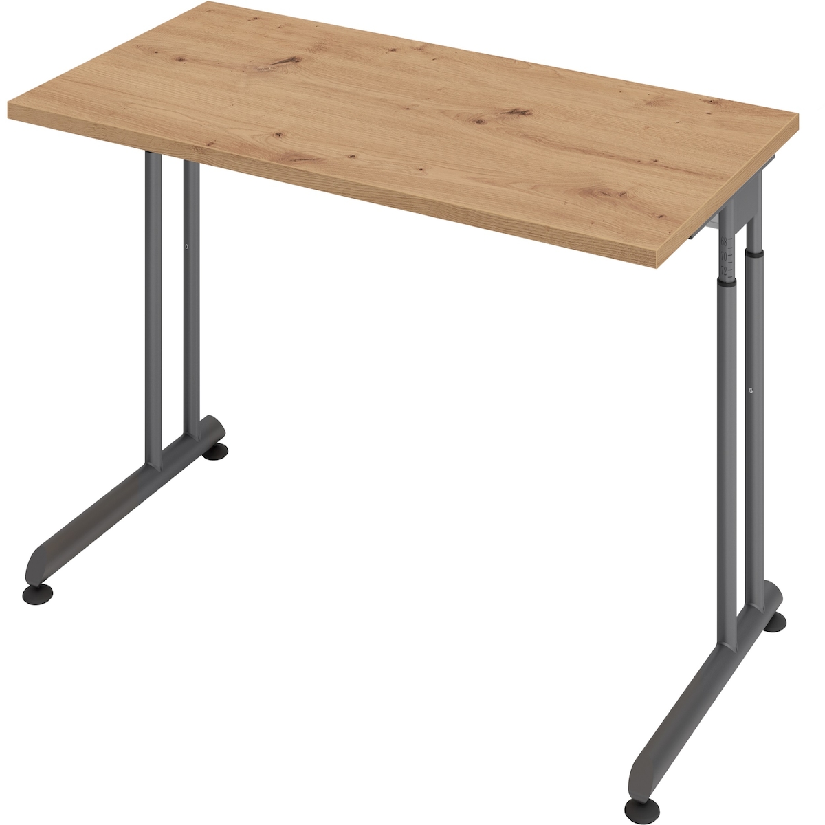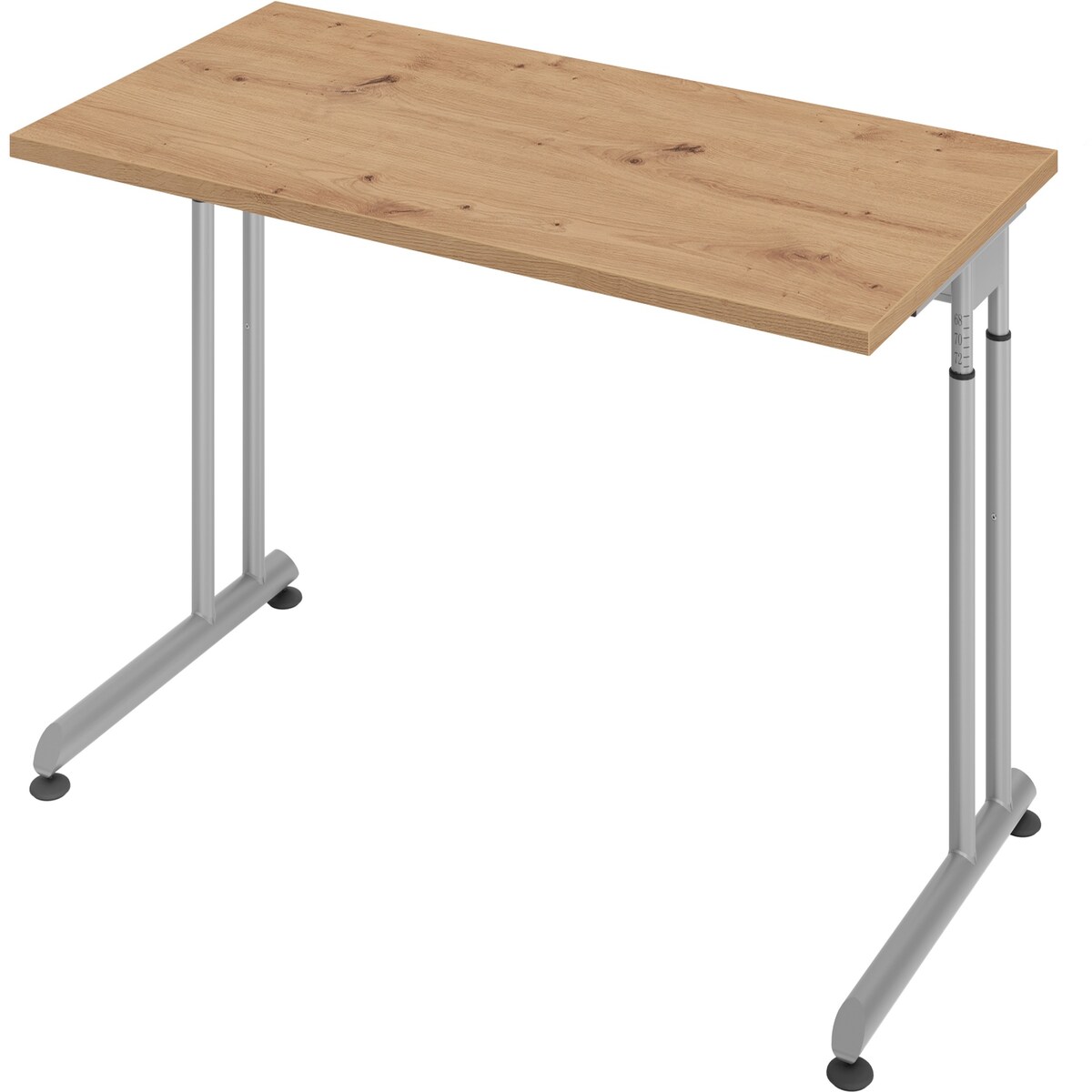 bümö höhenverstellbarer Schreibtisch O-Serie 120x80 cm in Asteiche, Gestell in Silber - PC Tisch klein für's Büro manuell höhenverstellbar,