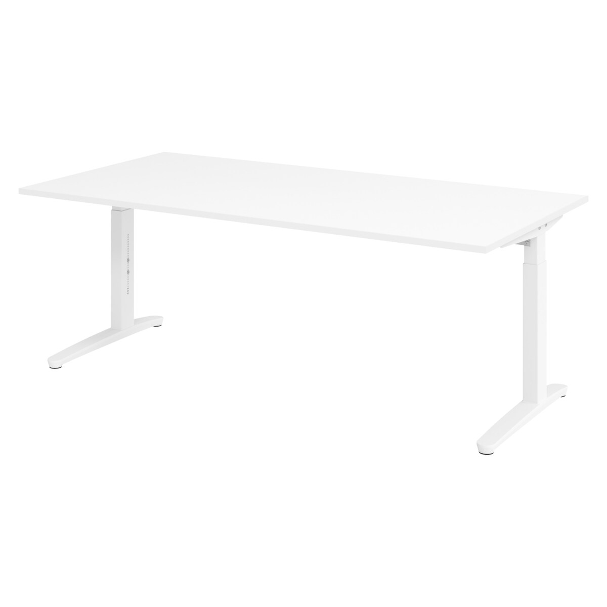 bümö manuell höhenverstellbarer Schreibtisch 200x100 in weiß, Gestell in weiß - PC Tisch höhenverstellbar & groß, höhenverstellbarer Tisch Büro,