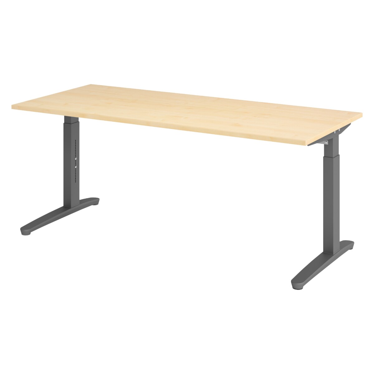 bümö manuell höhenverstellbarer Schreibtisch 180x80 in Ahorn, Gestell in graphit - PC Tisch höhenverstellbar & groß, höhenverstellbarer Tisch Büro,