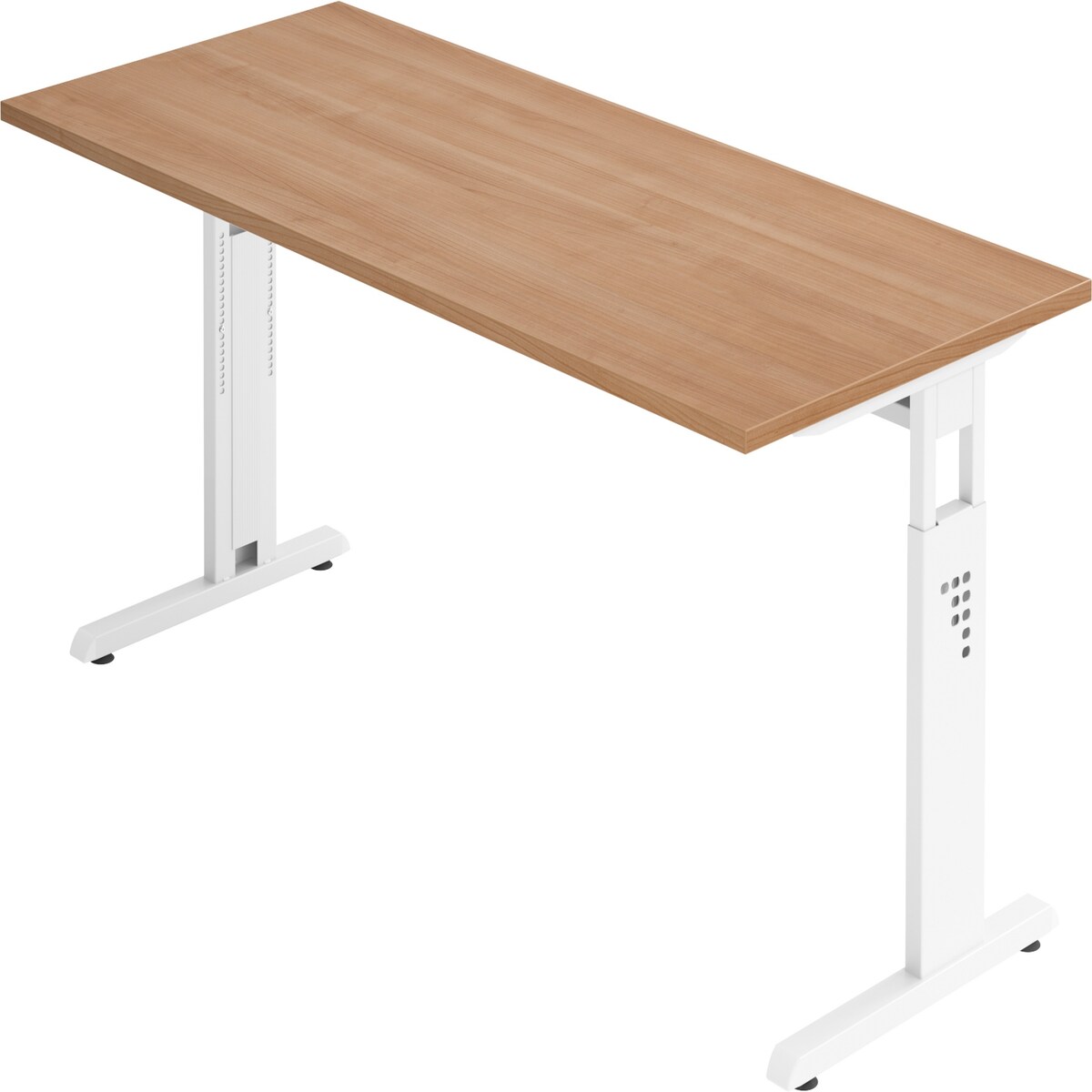 bümö höhenverstellbarer Schreibtisch O-Serie 180x80 cm in Nussbaum, Gestell in weiß - großer PC Tisch für's Büro manuell höhenverstellbar,