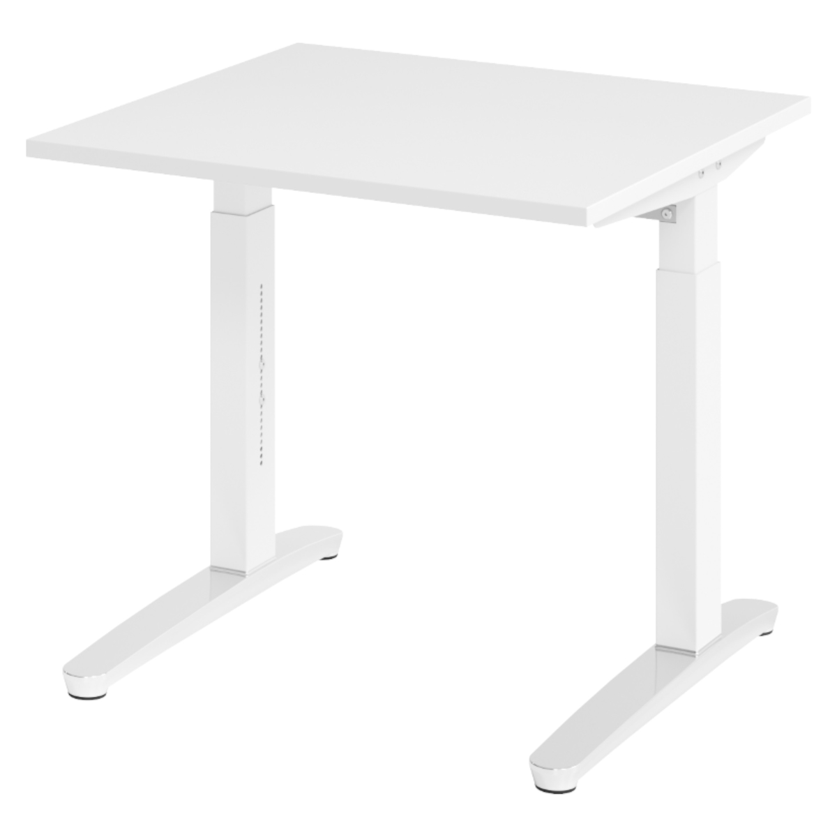 bümö manuell höhenverstellbarer Schreibtisch 80x80 in weiß, Gestell in weiß/alu - PC Tisch höhenverstellbar & klein, höhenverstellbarer Tisch Büro,