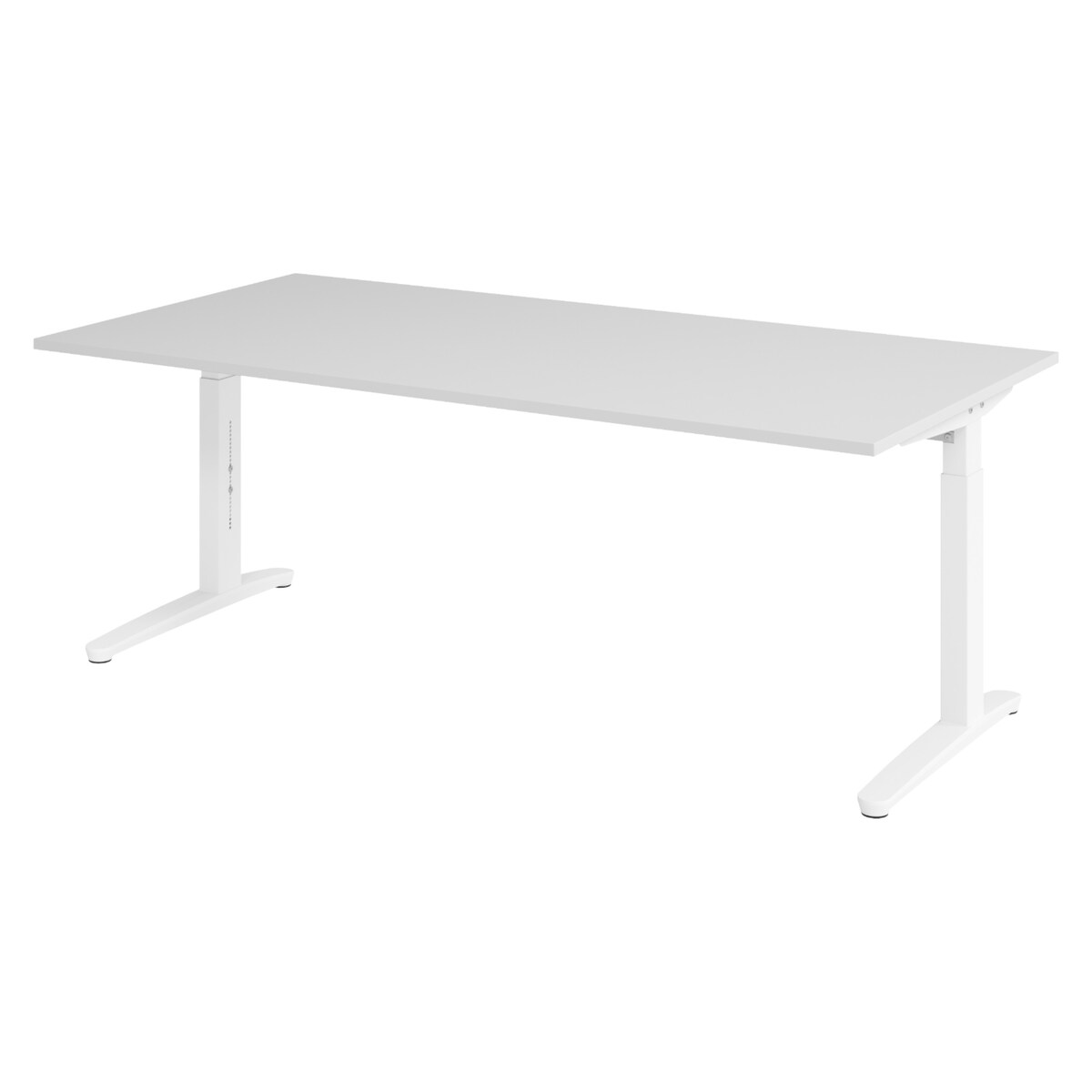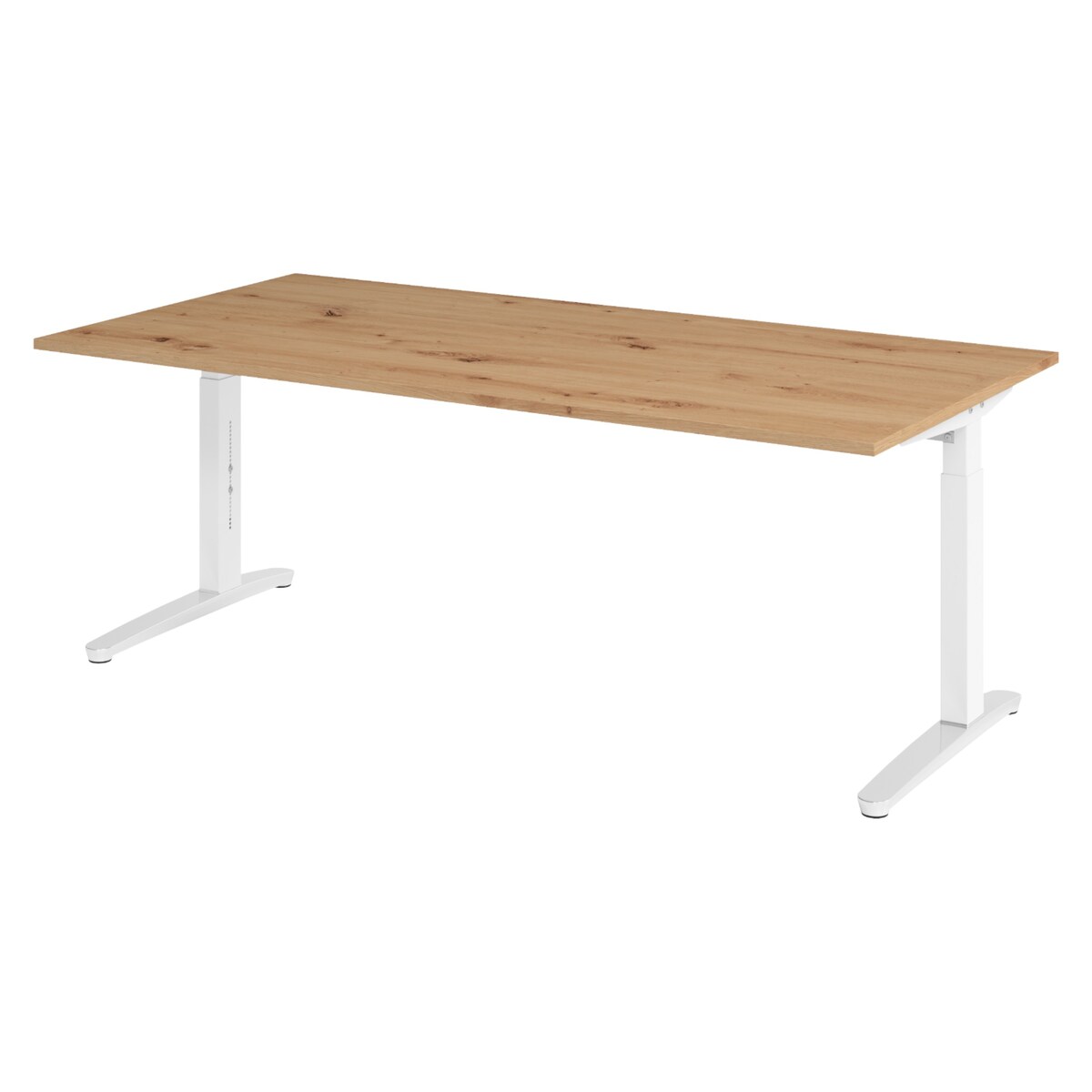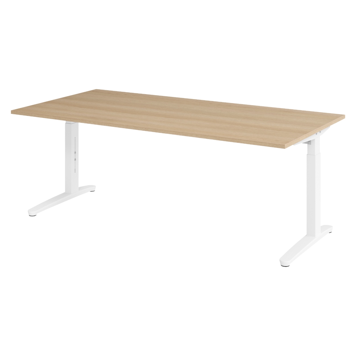 bümö höhenverstellbarer Schreibtisch O-Serie 200x100 cm in Asteiche, Gestell in weiß - großer PC Tisch für's Büro manuell höhenverstellbar,