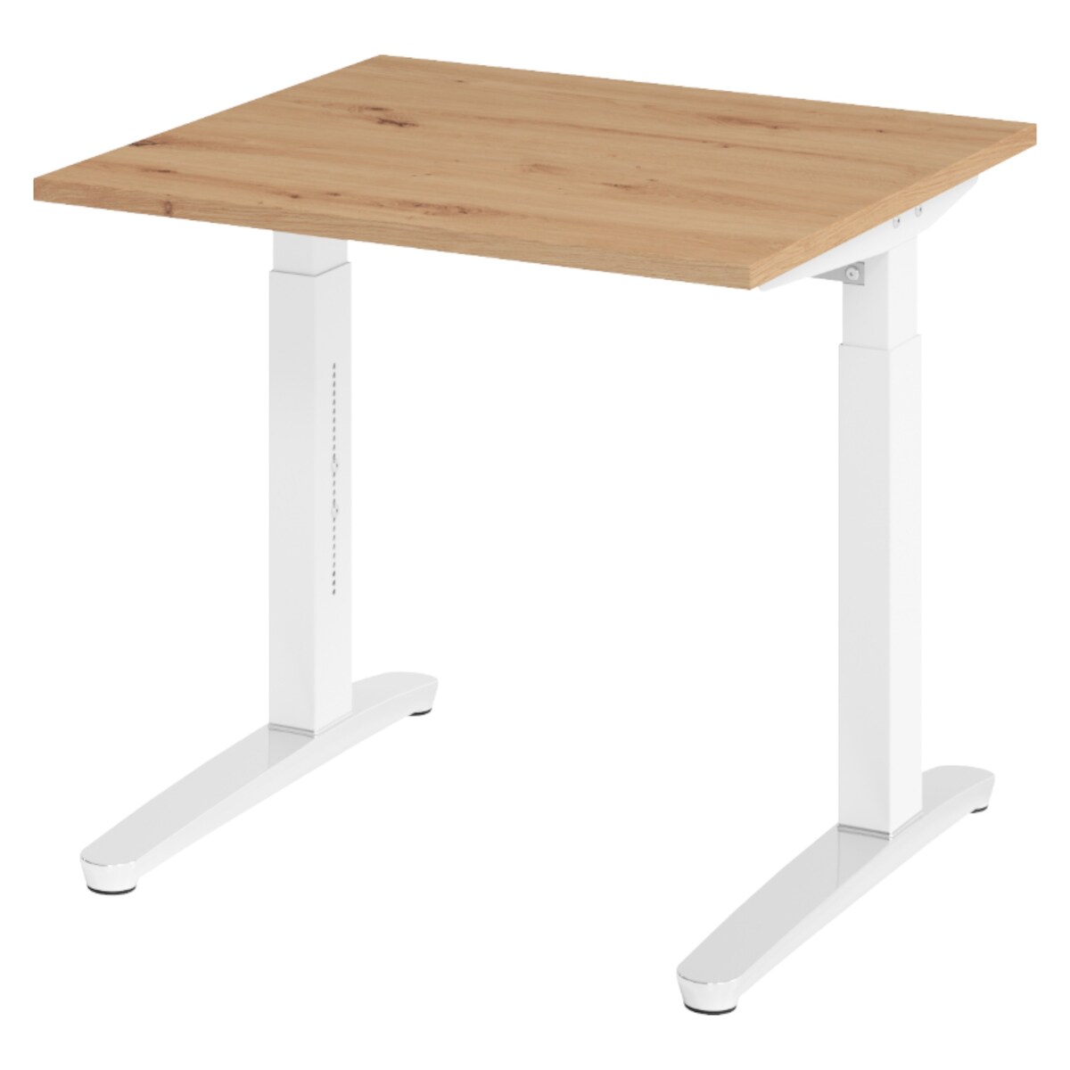 bümö manuell höhenverstellbarer Schreibtisch 80x80 in Asteiche, Gestell in weiß/alu - PC Tisch höhenverstellbar & klein, höhenverstellbarer Tisch