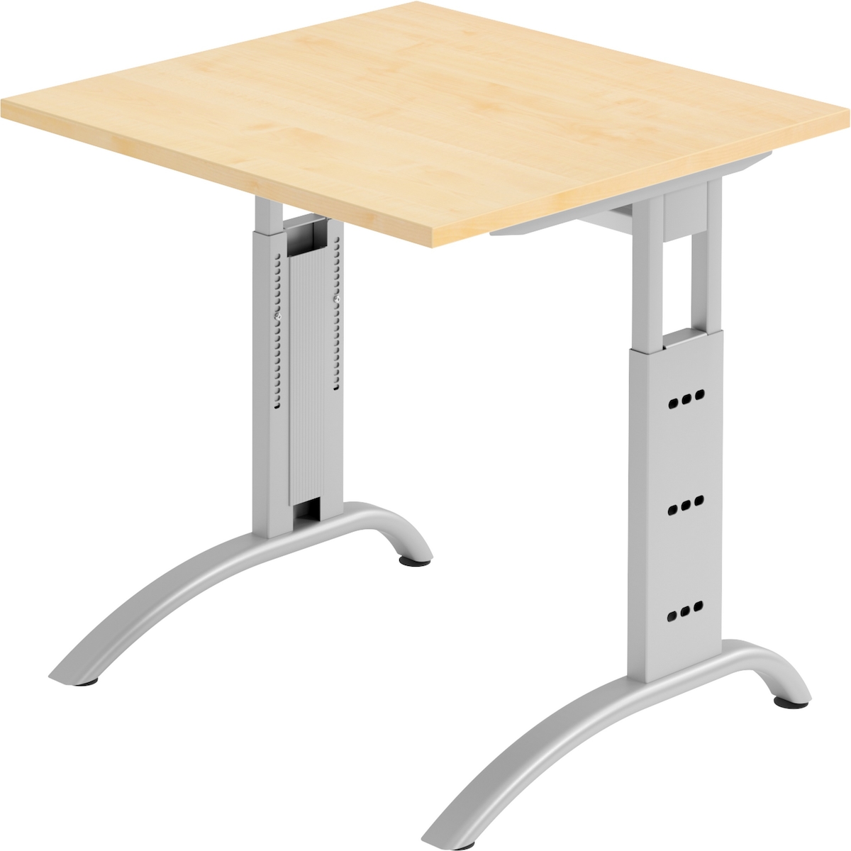 bümö höhenverstellbarer Schreibtisch O-Serie 80x80 cm in Buche, Gestell in Silber - PC Tisch klein für's Büro manuell höhenverstellbar, Computertisch
