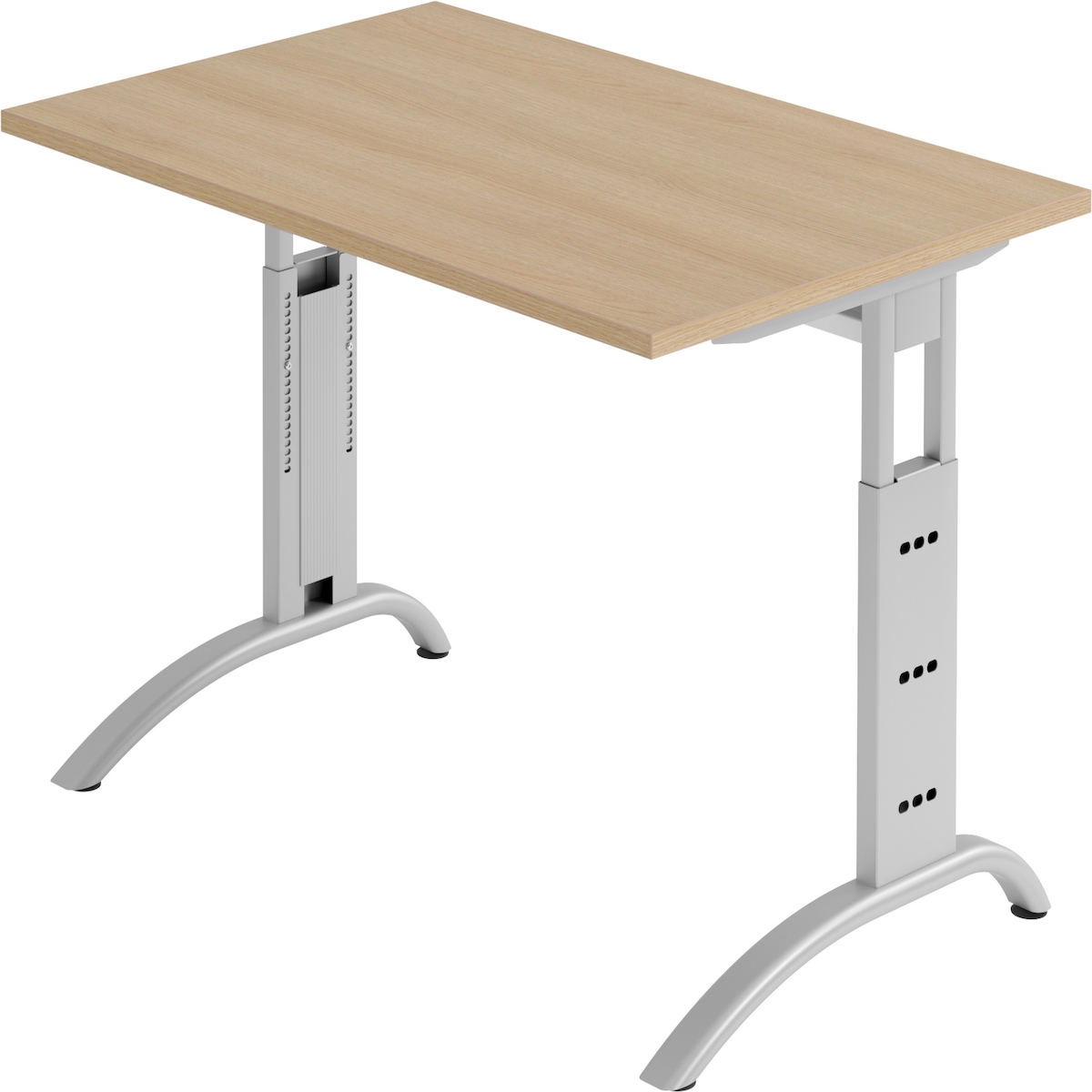 bümö höhenverstellbarer Schreibtisch H-Serie 120x80 cm in Eiche, Gestell in Silber - PC Tisch klein für's Büro manuell höhenverstellbar,