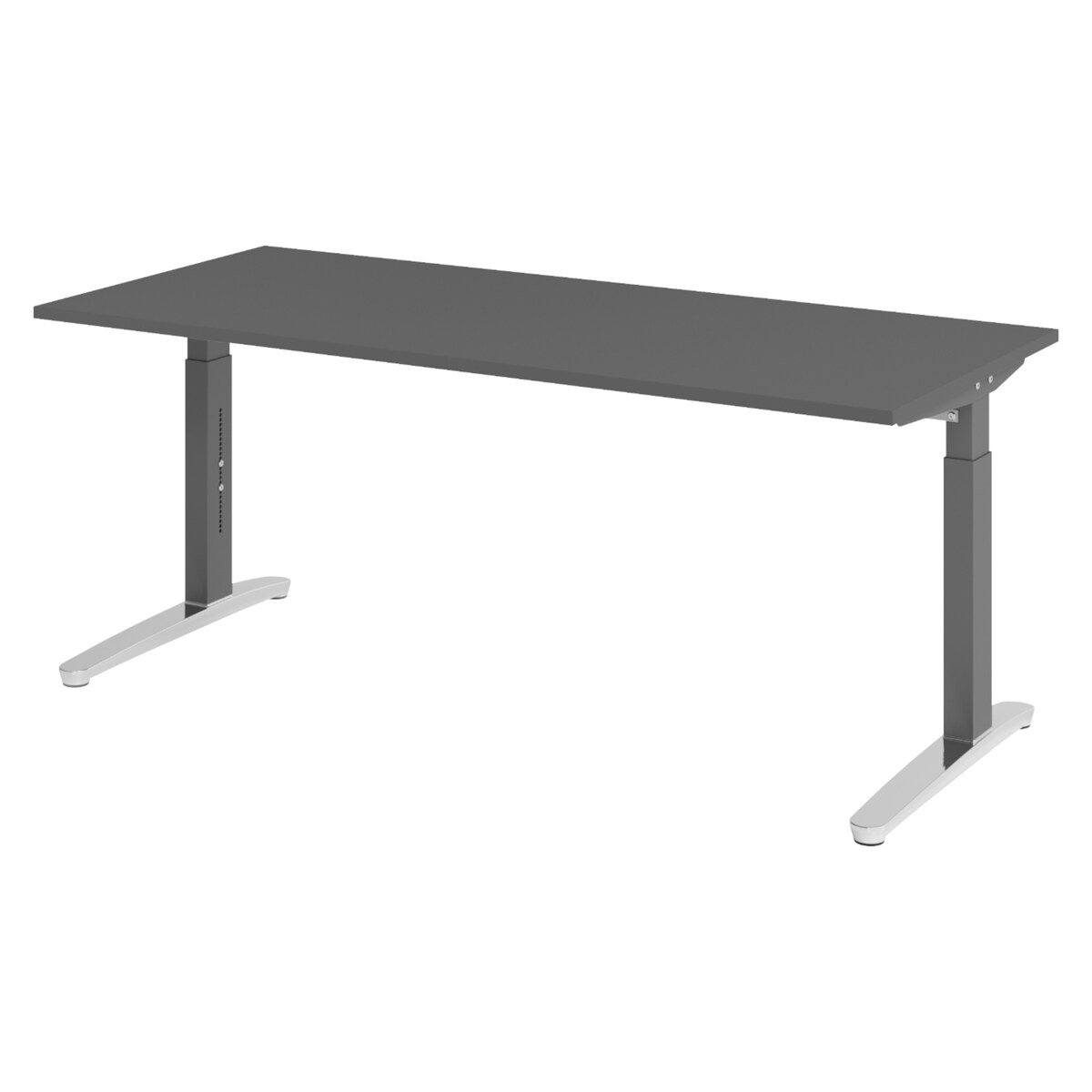 bümö höhenverstellbarer Schreibtisch 180x80 cm in graphit, Gestell silber - PC Tisch höhenverstellbar & groß, höhenverstellbarer Tisch Büro, großer