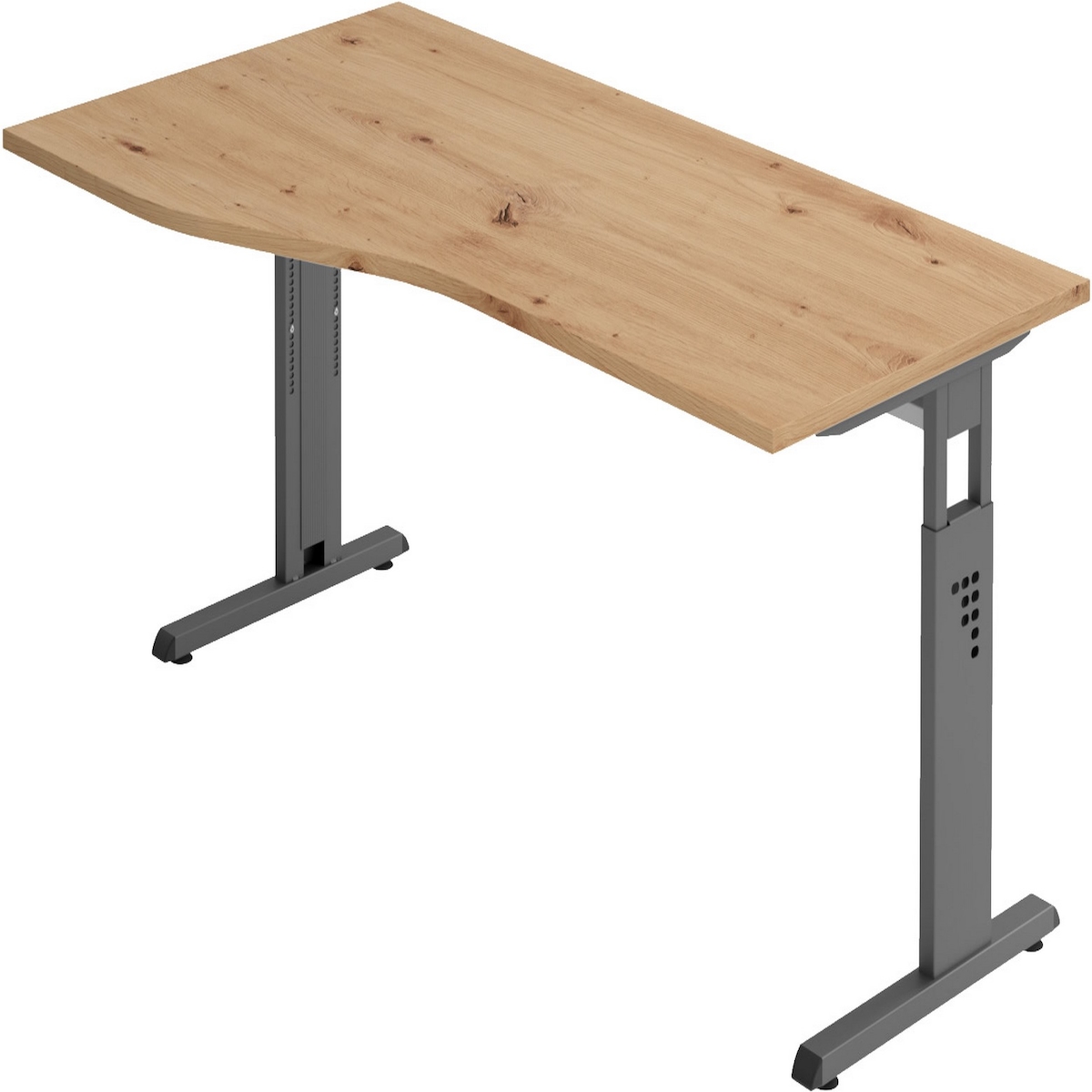 bümö höhenverstellbarer Schreibtisch O-Serie 180x100 cm in Asteiche, Gestell in graphit - großer PC Tisch für's Büro manuell höhenverstellbar,