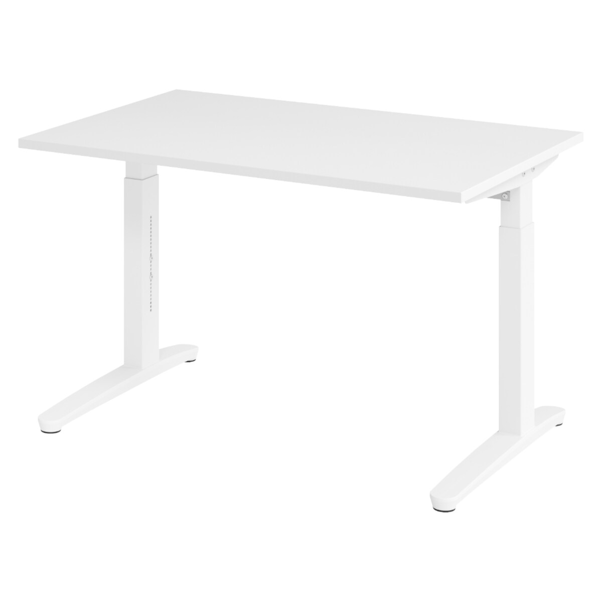 bümö manuell höhenverstellbarer Schreibtisch 120x80 in weiß, Gestell in weiß - PC Tisch höhenverstellbar & klein, höhenverstellbarer Tisch Büro,