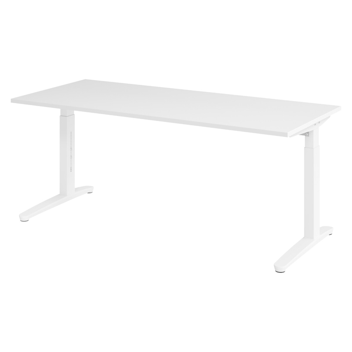 bümö manuell höhenverstellbarer Schreibtisch 180x80 in weiß, Gestell in weiß - PC Tisch höhenverstellbar & groß, höhenverstellbarer Tisch Büro,