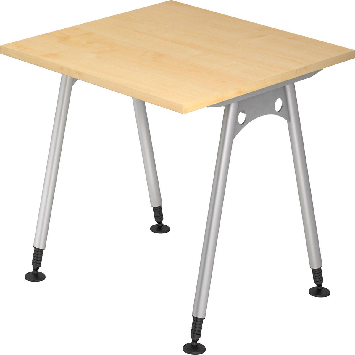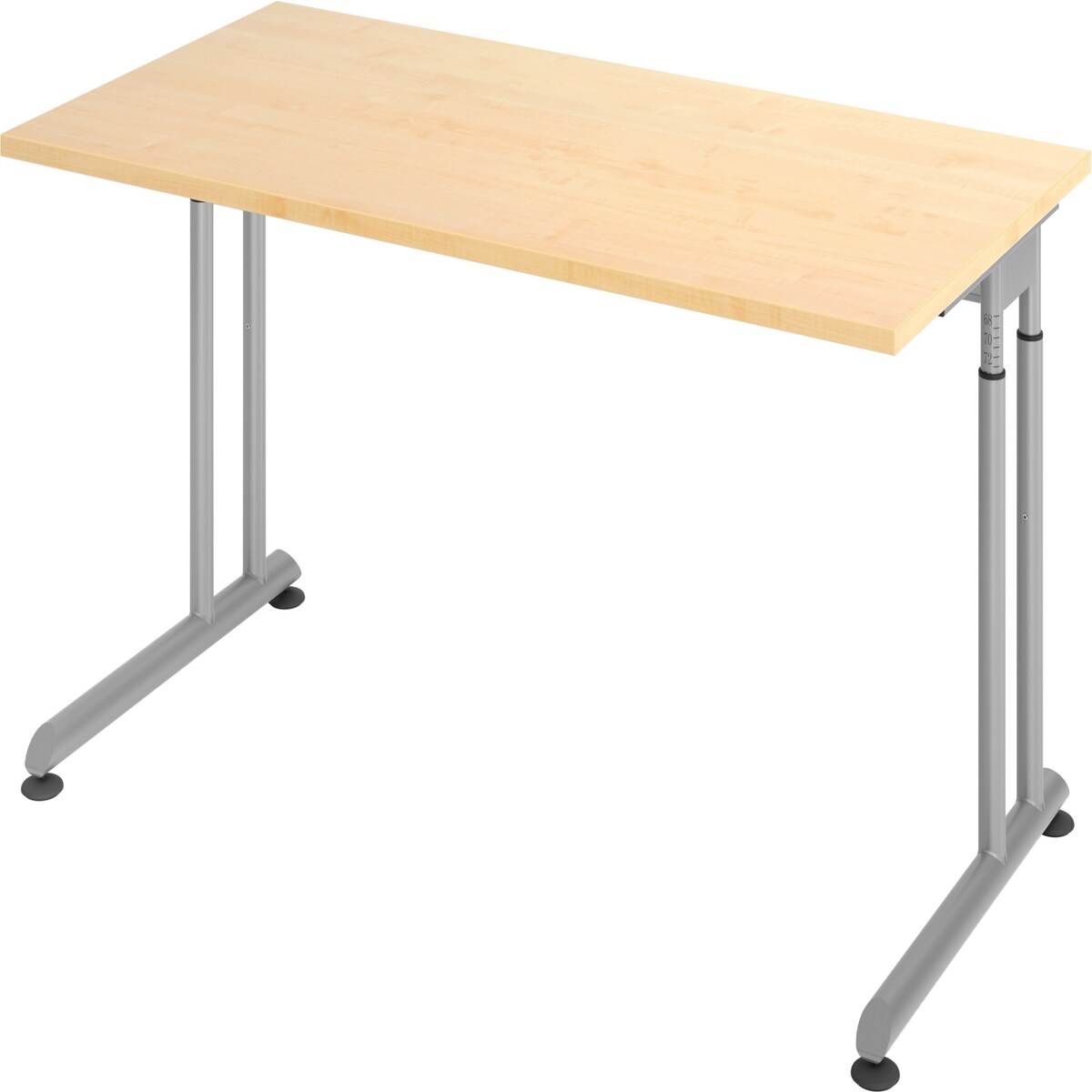 bümö Schreibtisch klein N-Serie 120x80 cm, Tischplatte aus Holz in Ahorn, Gestell aus Metall in Silber - PC Tisch, kleiner Computertisch für's Büro,
