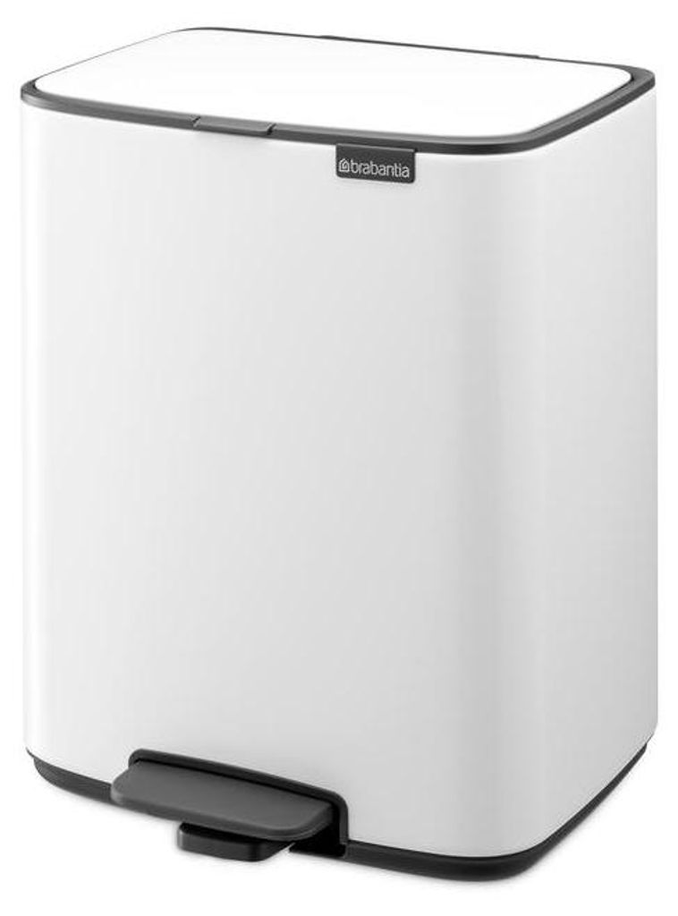 Brabantia Bo Pedal Bin, 30 l, Rechteckig, Stahl, Weiß, Terrasse, Stahl