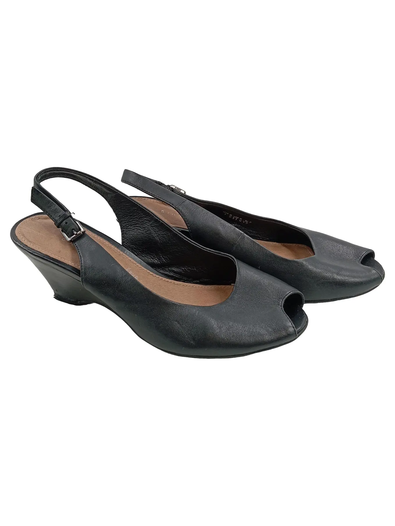 5TH AVENUE Damen Sandaletten Slingback Peeptoe Schwarz Leder Gr. 37