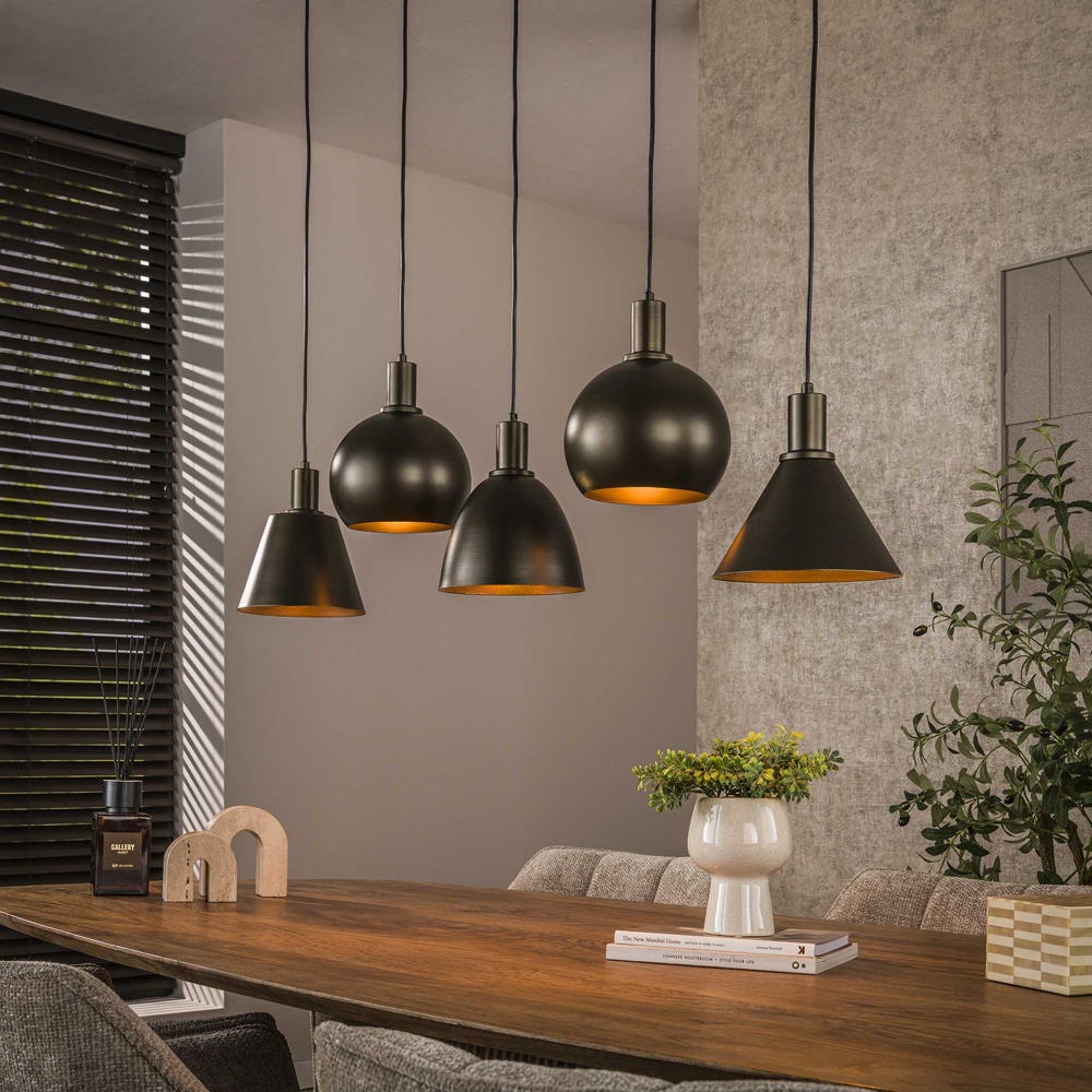 Lucide Jova Hänge- & Pendellampe & Hängeleuchte Esszimmer Vintage Gold-matt Schwarz Metall E27 1-flammig