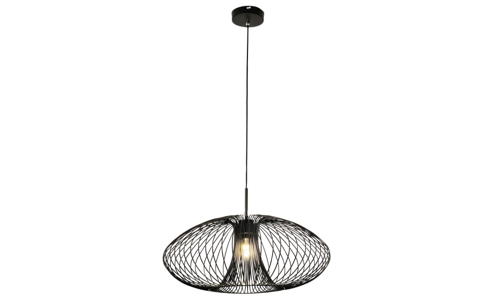 Hängeleuchte rund Draht Schirm Schwarz Ø 78,5 cm Metall Hängelampe Küche Pendelleuchte Esstisch