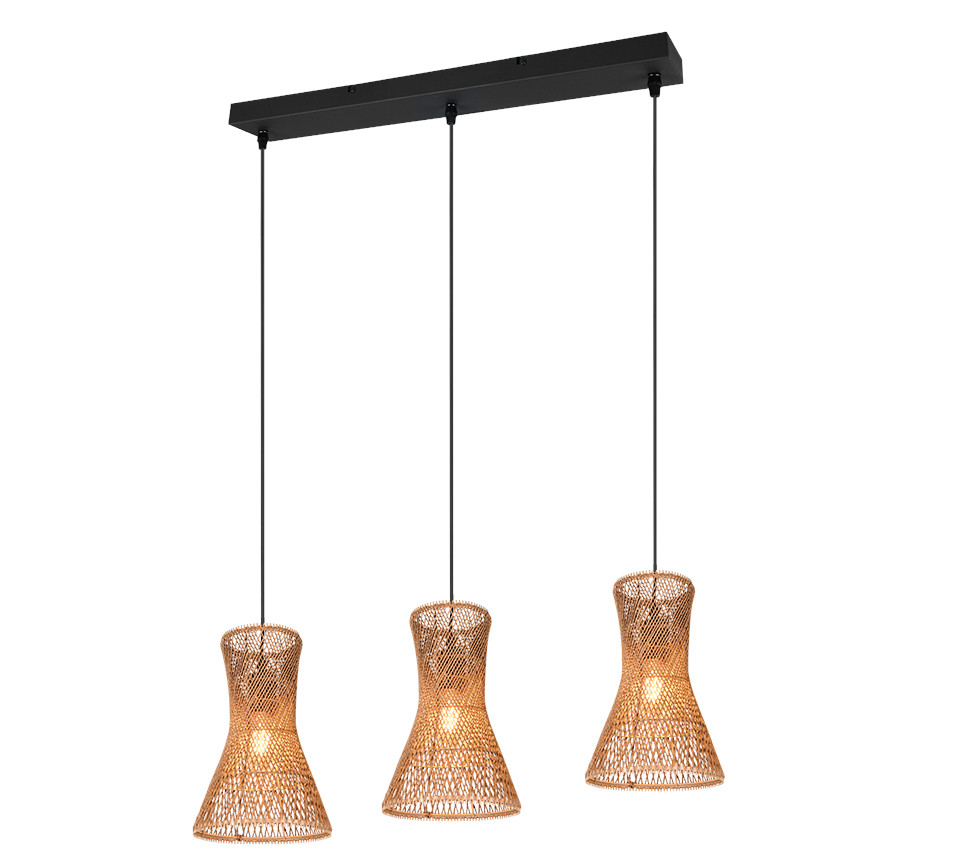 Pendelleuchte Metall E27 H: max. 100 cm Schwarz Natur 2-flammig länglich Retro Design Hängelampe