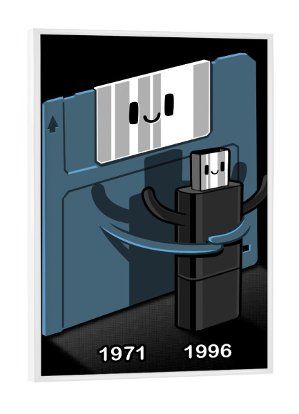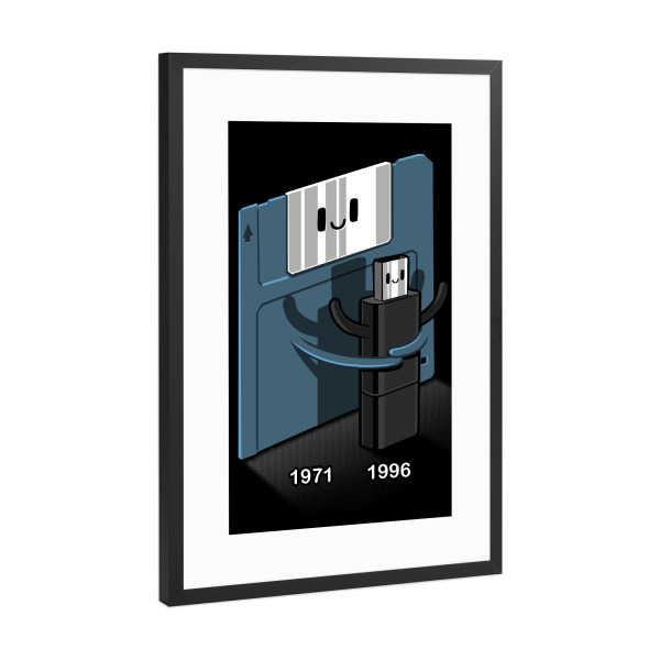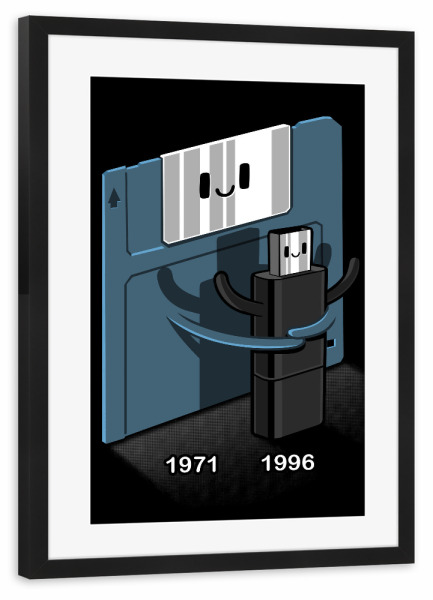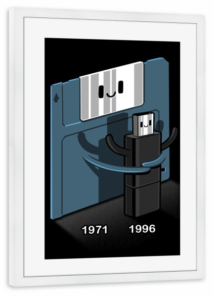 Poster mit Rahmen weiß "Floppy disk love Pendrive" artboxONE - Comic,Lustig - Floppy disk,Love,Pendrive,Informatic,Kawaii,Cute,Pc,Lustig,Witzig,Funny