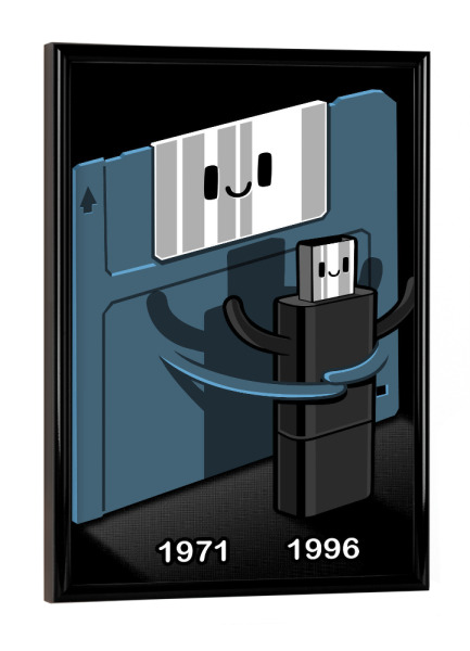 Poster mit Rahmen Schwarz (Metallic) "Floppy disk love Pendrive" artboxONE - Comic,Lustig