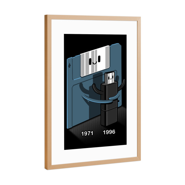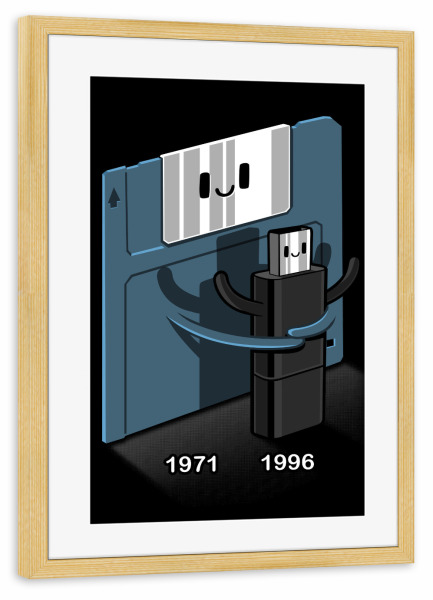 Poster mit Rahmen kiefer "Floppy disk love Pendrive" artboxONE - Comic,Lustig