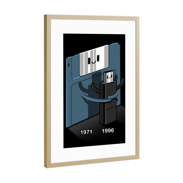 Poster mit Rahmen Gold "Floppy disk love Pendrive" artboxONE - Comic,Lustig - Floppy disk,Love,Pendrive,Informatic,Kawaii,Cute,Pc,Lustig,Witzig,Funny
