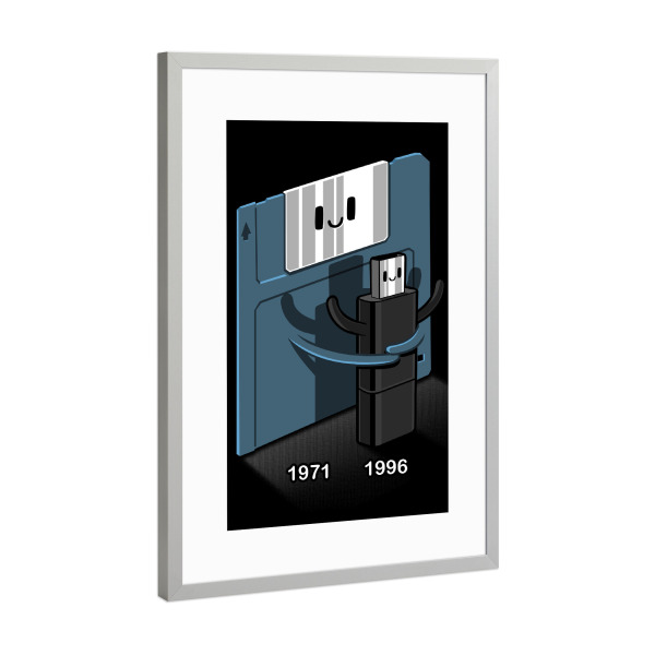 Poster mit Rahmen Silber "Floppy disk love Pendrive" artboxONE - Comic,Lustig