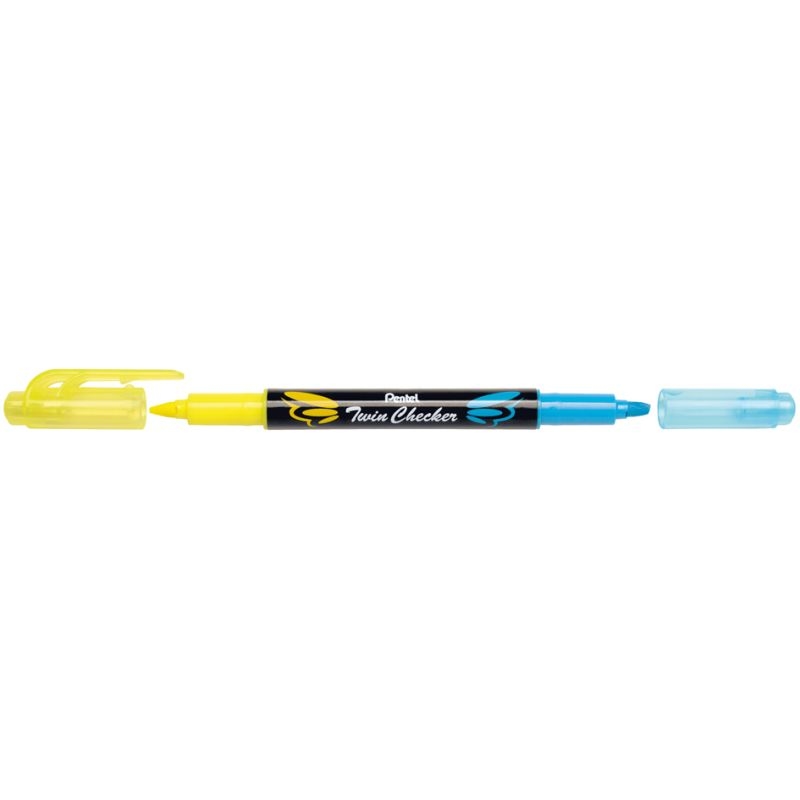 Pentel Textmarker 'TWIN CHECKER', 2 Spitzen, gelb/blau