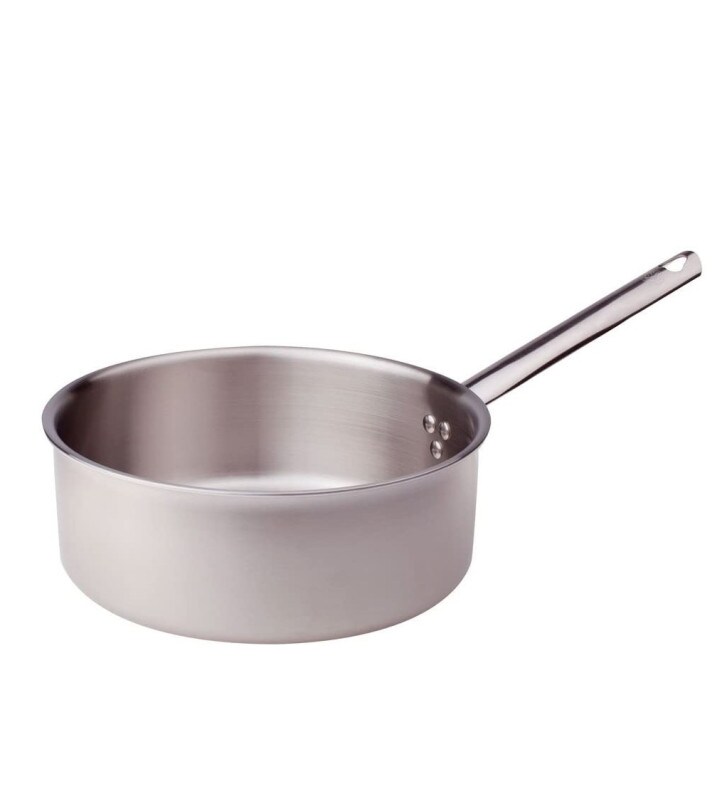 Pentole Agnelli, Gerade Pfanne aus Alu-inox 5ply Sperrholz, 1 Griff, 24 cm, ALUM111124