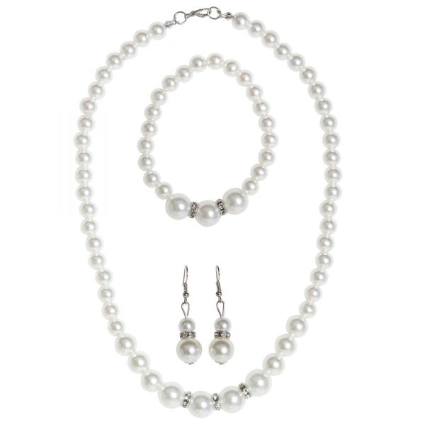 Strass Perlenkette, Ohrringe & Armband, - Widmann
