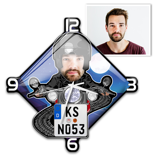 Personalisierte Motorrad Wanduhr – Wanduhr mit Motorradfahrer Bild und Namen – Perfektes Geschenk für Motorradliebhaber und Biker! - auto4style