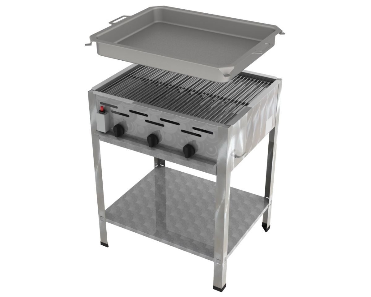 ChattenGlut Professional Gastrobräter 3-flammig Standgerät 10,8kW und Rost und Pfanne