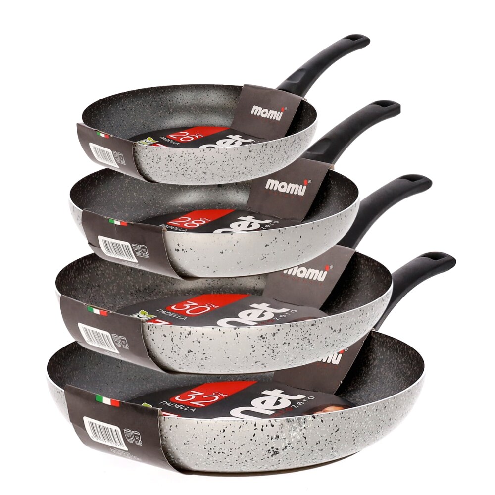 Mamù 4-teiliges Pfannenset, antihaftbeschichtet, Aluminium, kratzfest, PFOA-frei, Ø 26/28/30/32 cm