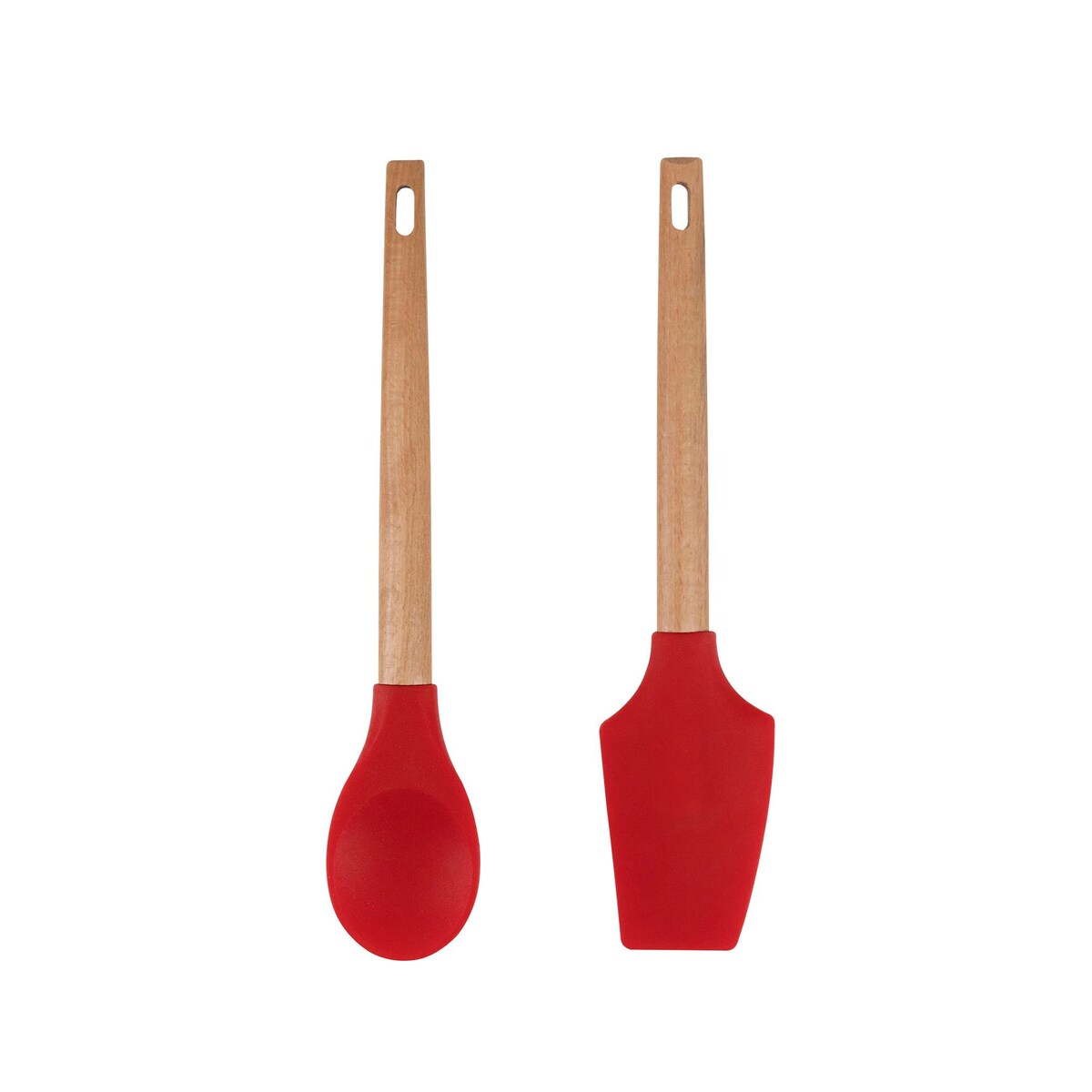 BERGNER Excalibur - Set aus 2 Küchenutensilien - Löffel und Pfannenwender - aus Silikon und Holzgriff in Rot