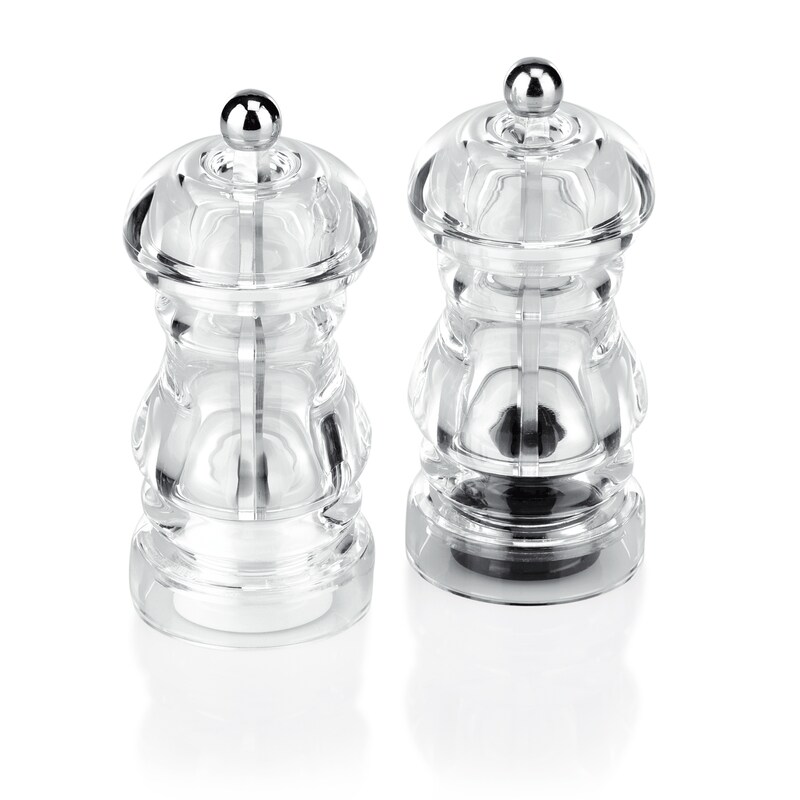 3x Salz- und Pfeffermühlen Set Acryl, 15 cm Classic Mill Keramikmahlwerk
