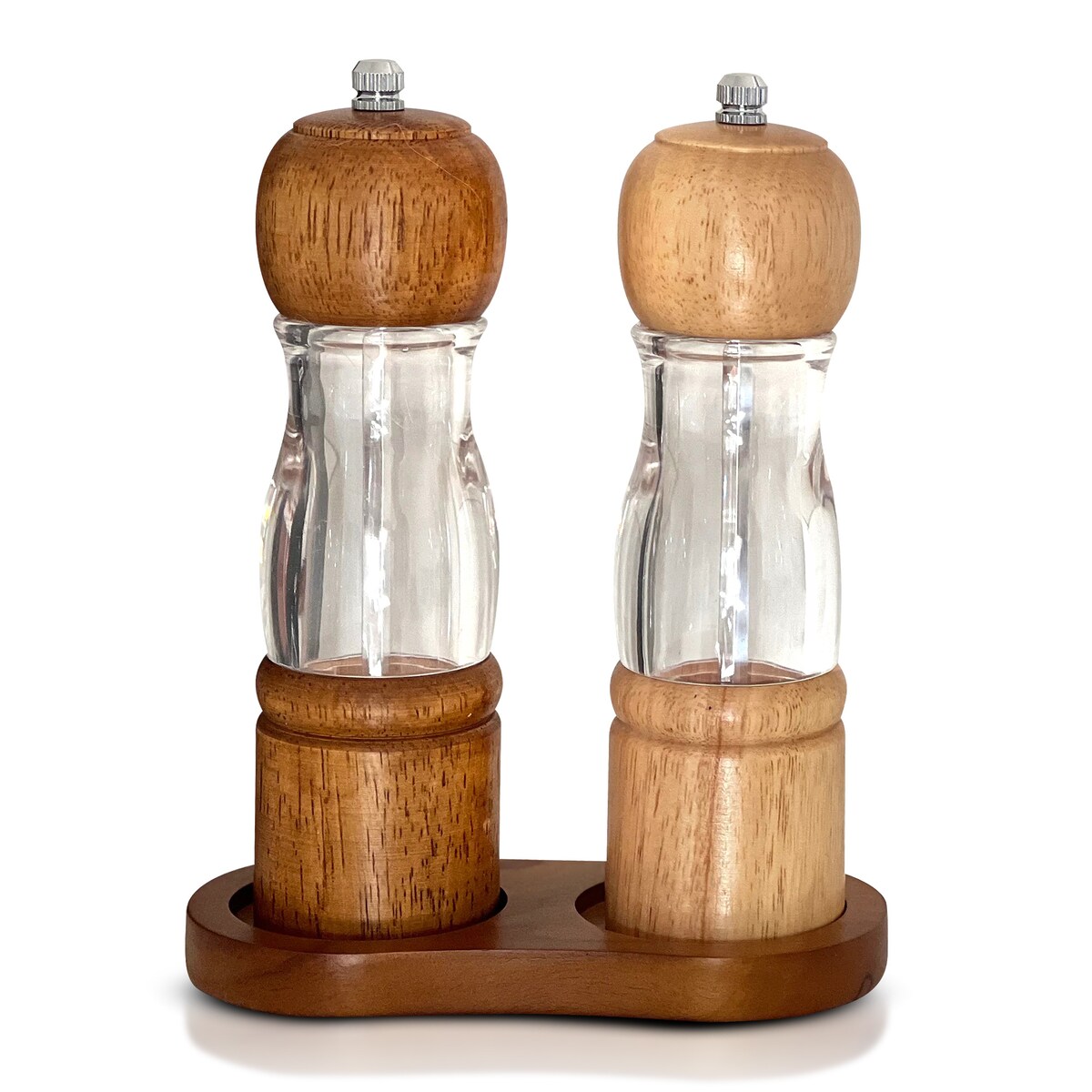 Klassisches manuelles transparentes Pfeffermühlen- und Salzmühlen-Set - 2 Stück 20 cm - Hand-Shaker aus massivem Holz - Keramikkern mit einstell...