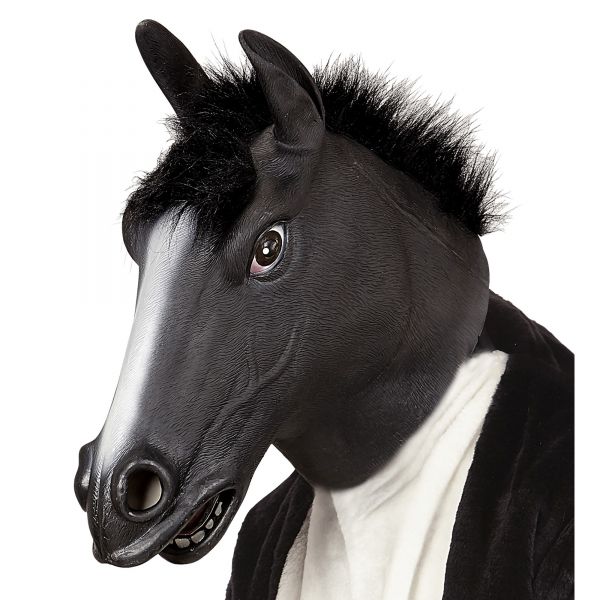 Ganzkopf Maske schwarzes Pferd mit Plüschhaar, - Widmann