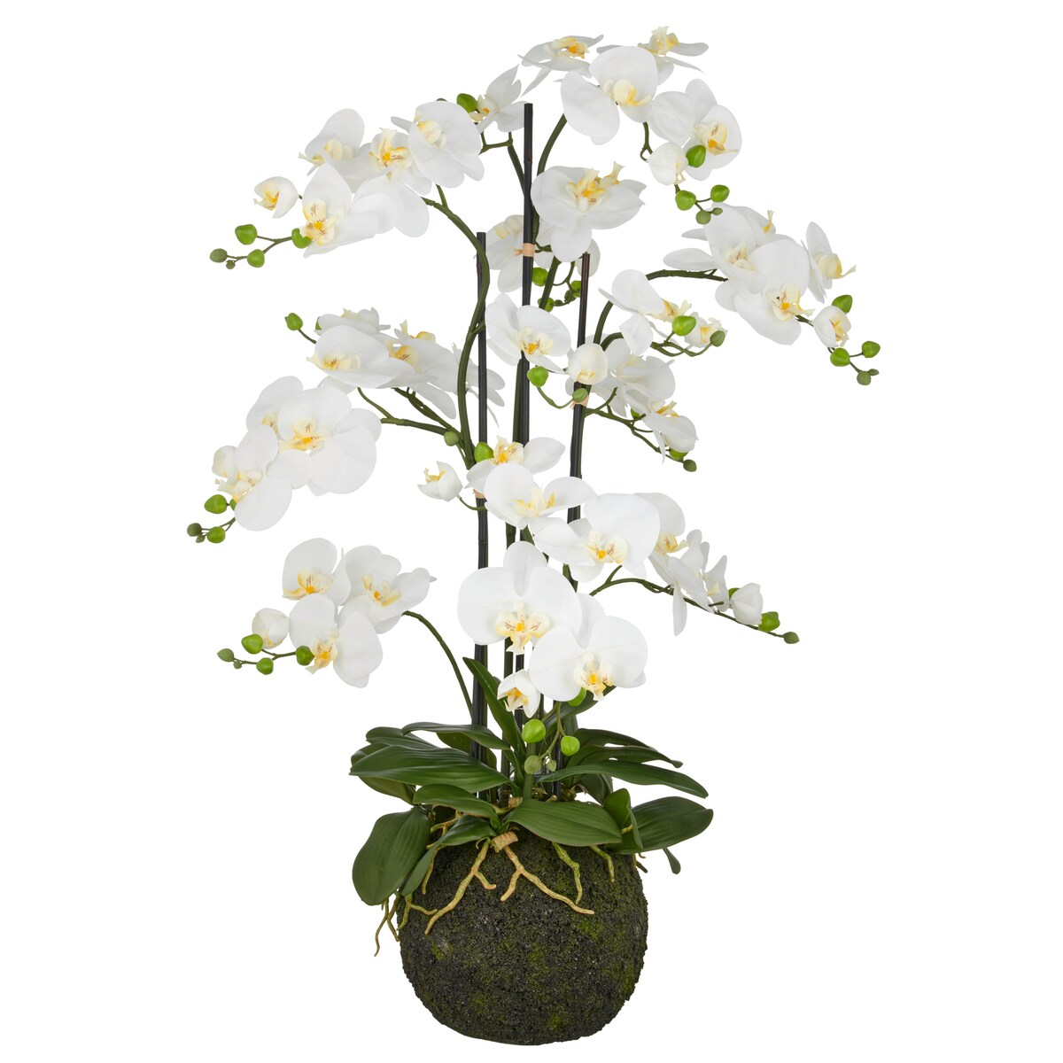 CREATIV green künstliche Pflanze Phalaenopsis Orchidee in weiß, 110 cm, mit Erdballen, Real Touch
