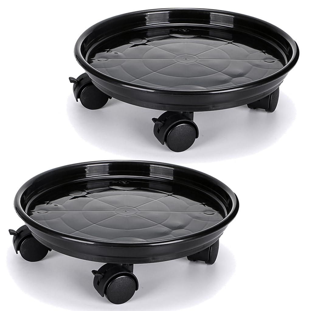 UISEBRT 2er Set Blumenroller Pflanzenwagen, rund 30 cm, schwarz, mit Kunststoff-PU-Rädern x4, Pflanzenträger, Blumenwagen, für Terrasse und Garten