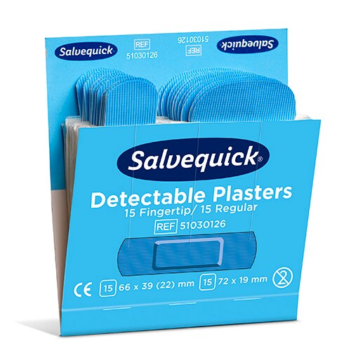 60 Cederroth Set Cederroth Salvequick Detectable Pflaster (2 x 15 Stück) blau Fingertip & Standard, Refill 92234