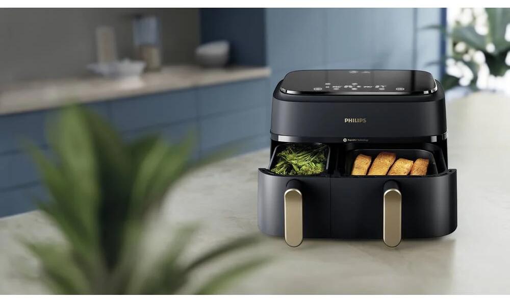 Philips Home NA352/04 Heißluft-Fritteuse Airfryer 9 Liter 2750 Watt Antihaftbeschichtung Doppelkammer schwarz