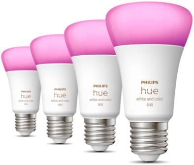 Philips Hue White & Color Ambiance LED Lampe, Viererpack, 9W, E27, A60, 806lm, 4000K (929002489604)