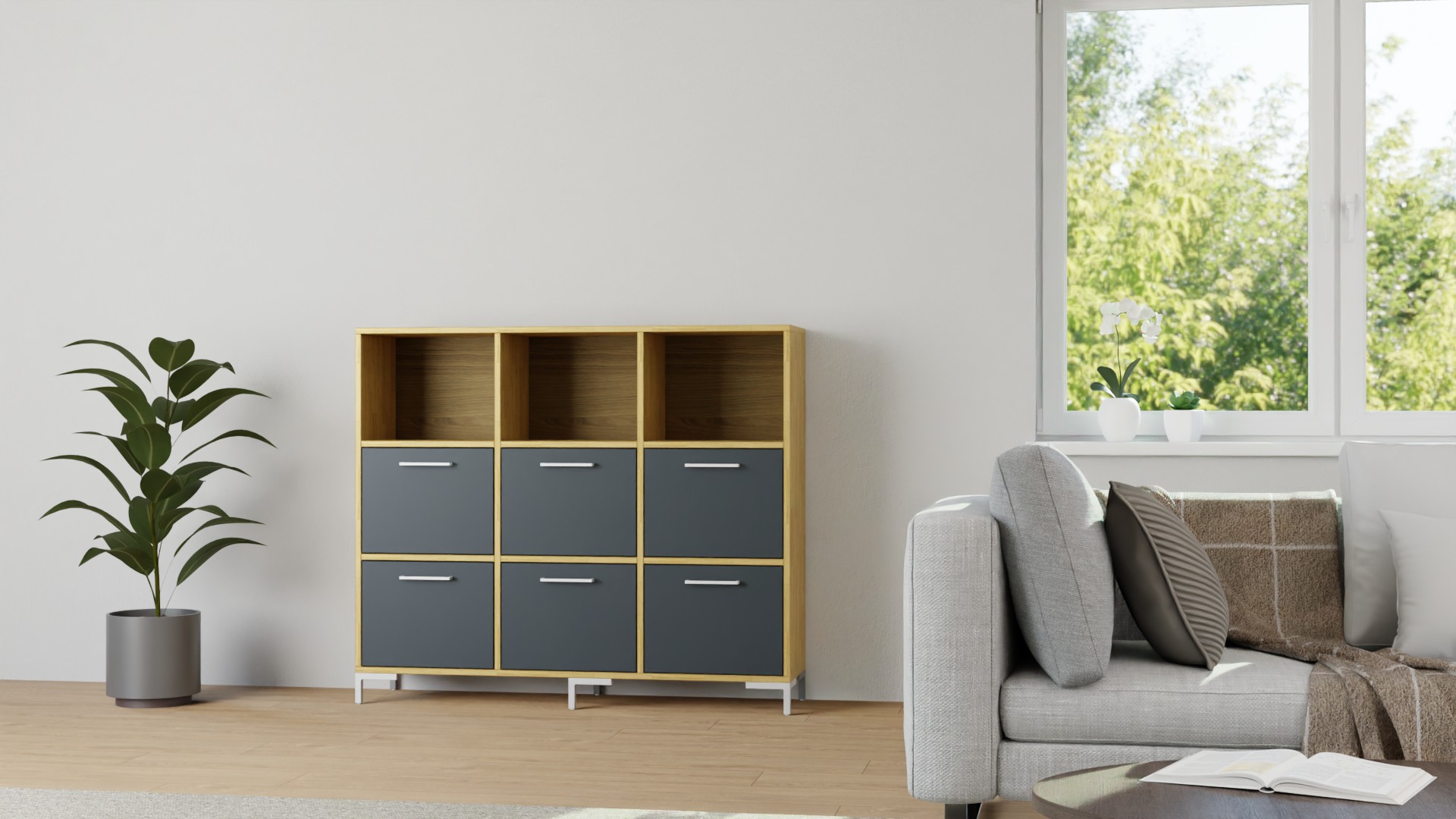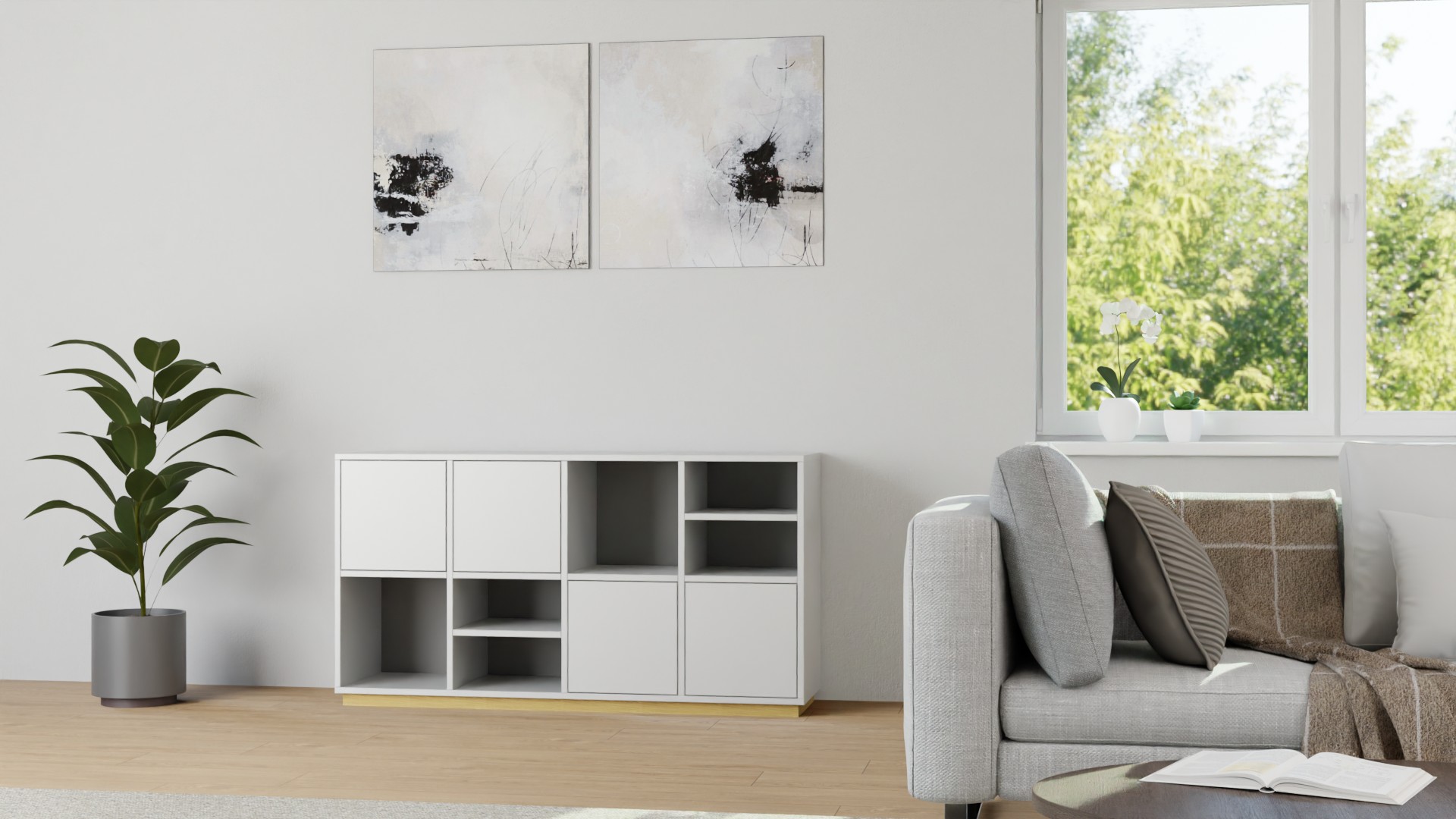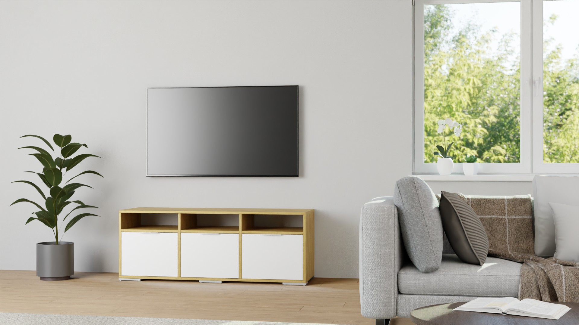 Pickawood Lowboard - Individualisierbar - Eiche/Weiß/Grau Premium Dekore