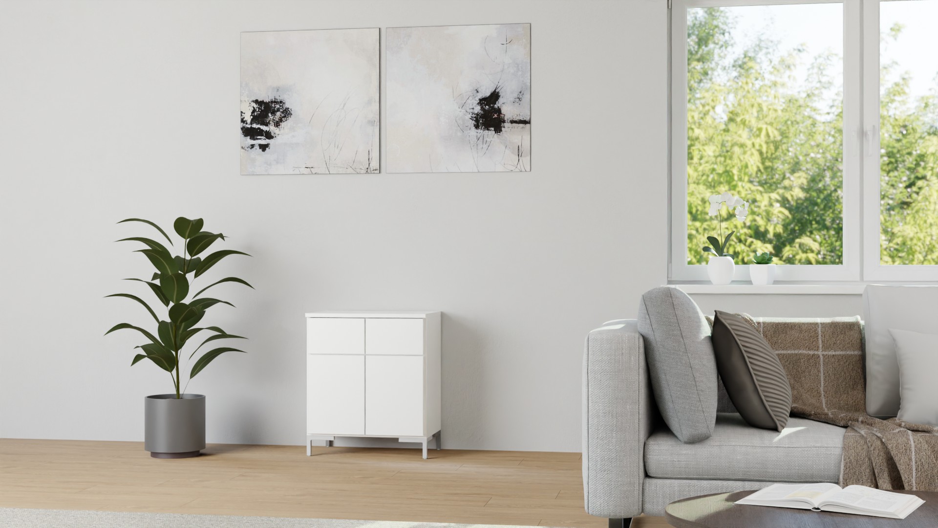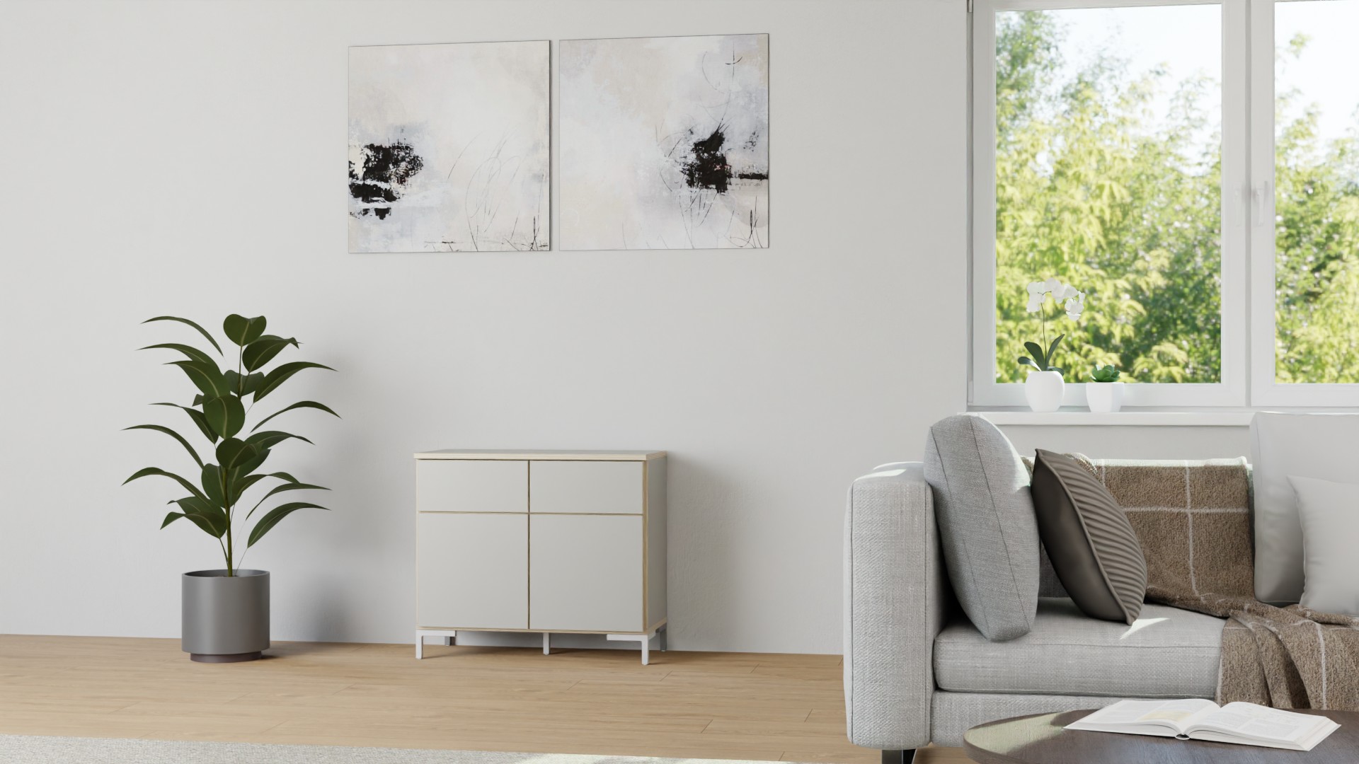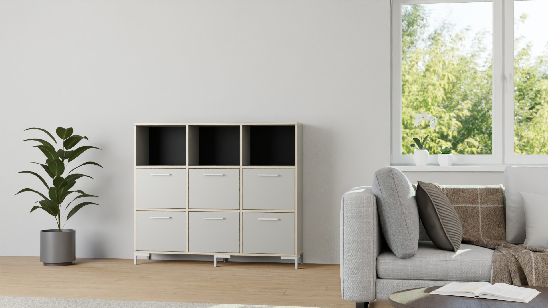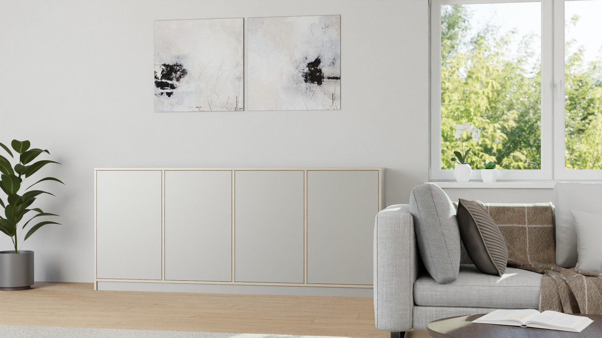 Pickawood Lowboard - Individualisierbar - Eiche/Weiß/Grau Premium Dekore