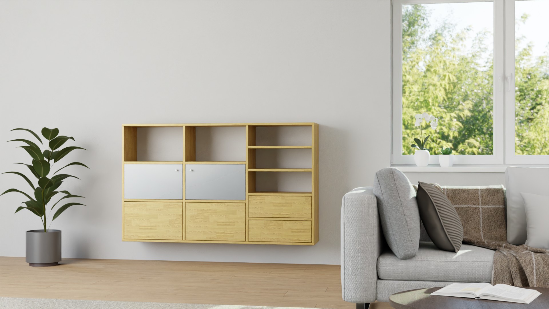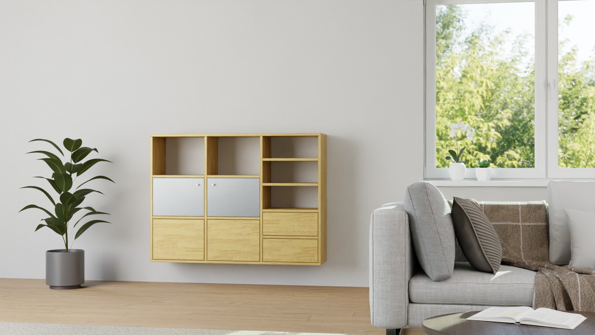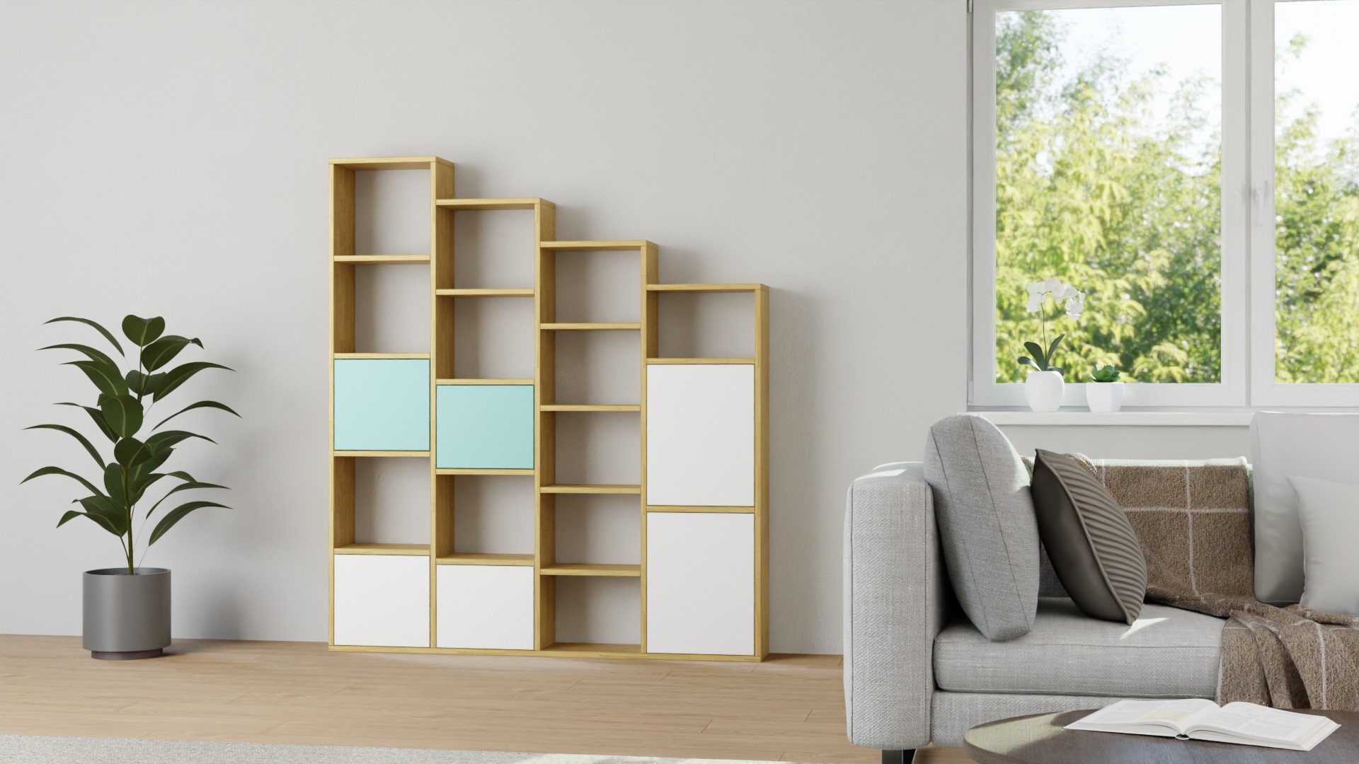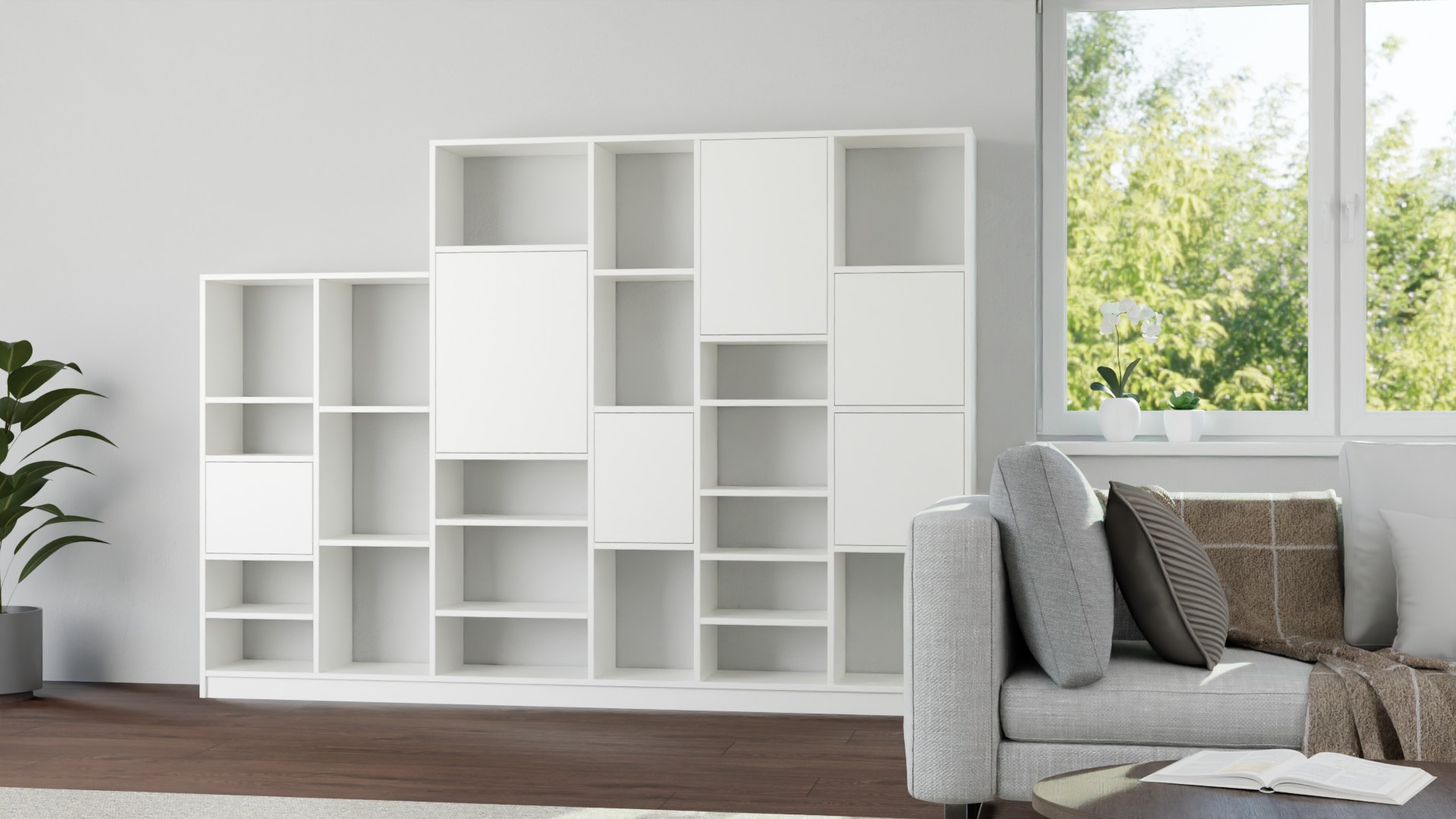 Pickawood Regalsystem nach Maß - Weiß/Grau/Schwarz/Eiche Echtholz Furnier