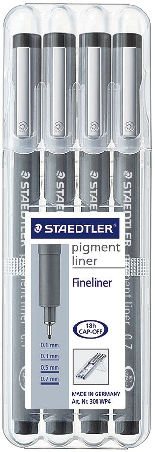 STAEDTLER Pigment Liner 308, 4er-Etui Fineliner