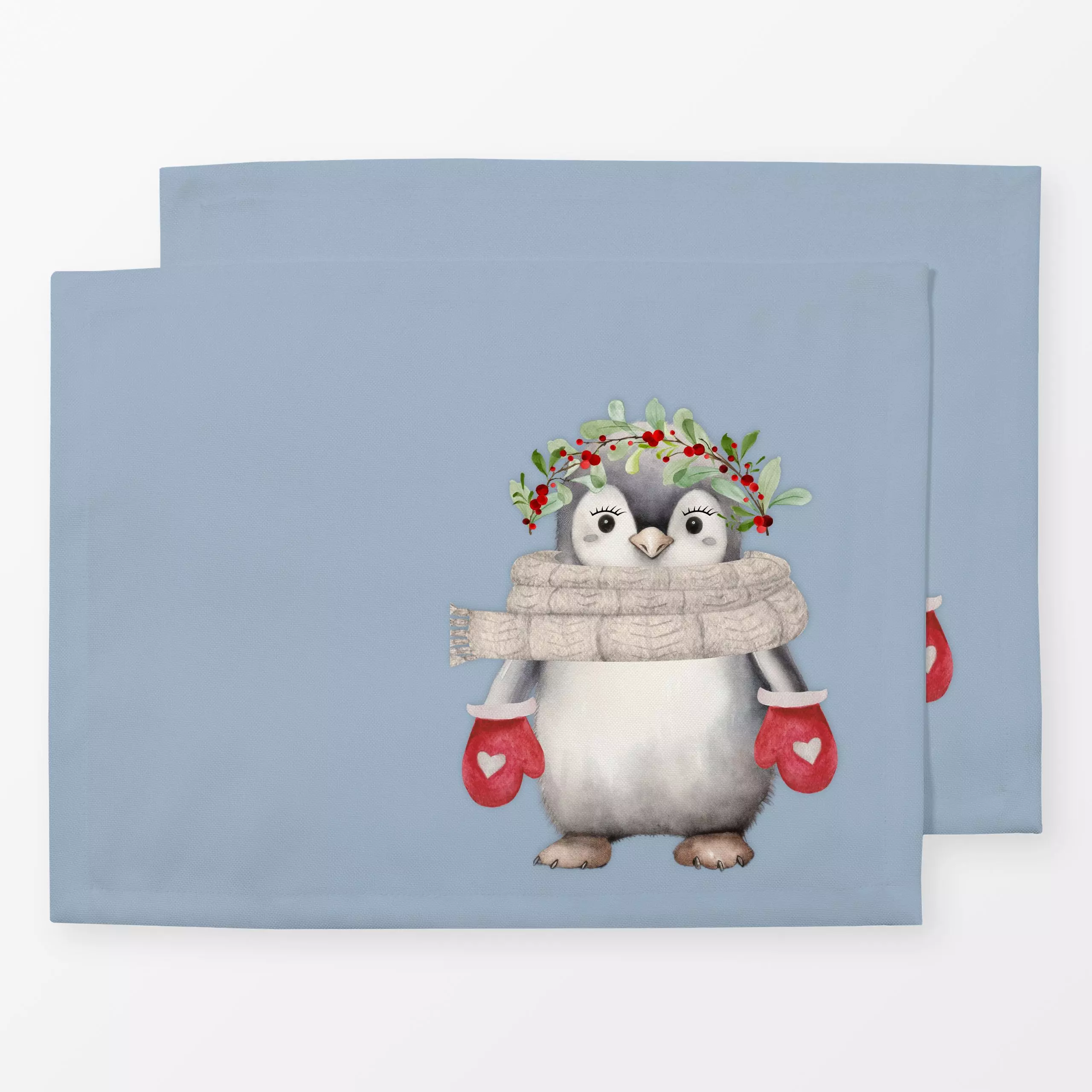 Tischset Holly Jolly Pinguin blau - Kinderzimmer & Motive für Kinder, Tiere, Weihnachten - von „Monika Strigel"; Hase, Pingu...