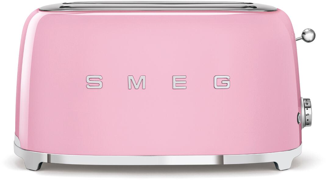 SMEG Edelstahl Toaster 4 Scheiben 6 Modi, Hochglanz, Auftaufunkton, 4 kurze Schlitze, für 4 Scheiben, 2000,00 W, Auftauen, Rösten, Stopp - Pink
