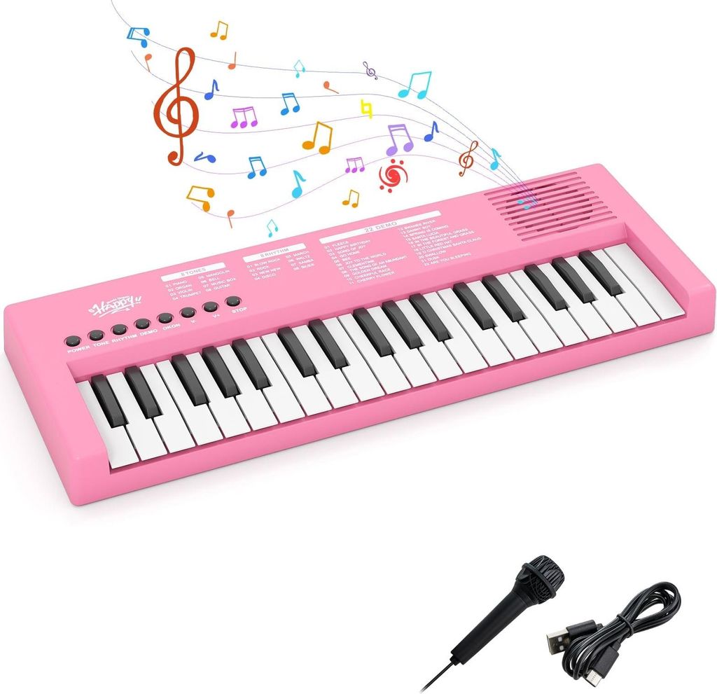 Pinkes Kinder-Keyboard, 37 Tasten, 8 Rhythmen, USB- und Batterieanschluss